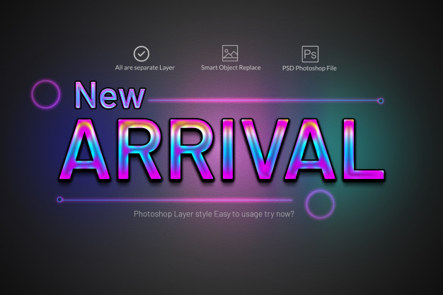 下载这个关于彩色霓虹灯文本效果的PSD文件,易于使用,智能对象替代,PS特效图层样式。
