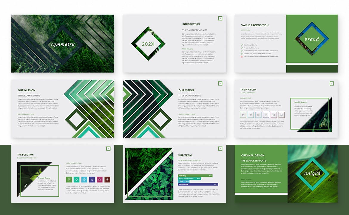 这次老不湿分享的是,高端对称几何图形powerpoint幻灯片演示模板(pptx),对称是一个使用原始形状和鲜艳色彩创建的模板,此设计突出显示了内容和图像,只需替换您自己的文本即可添加图像,可用版本的Powerpoint和Google幻灯片,如果您对此模板印象深刻,打动您的听众!