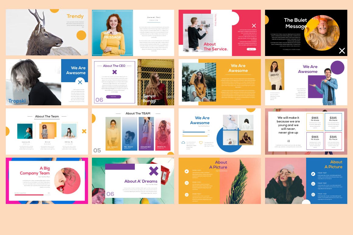 这款PPT模板拥有专业、超现代和独特的设计,每一张幻灯片都是用爱和对细节的关注创建的一个多用途的演示模板,可以用于任何类型的演示:商业、投资组合、公司、品牌、广告等。