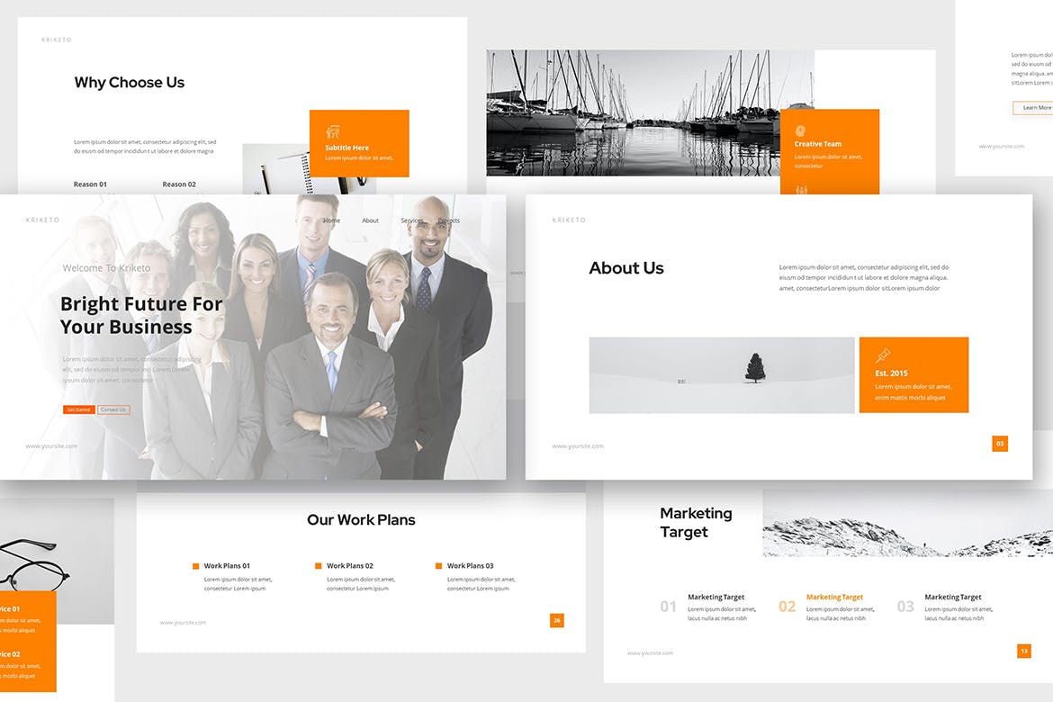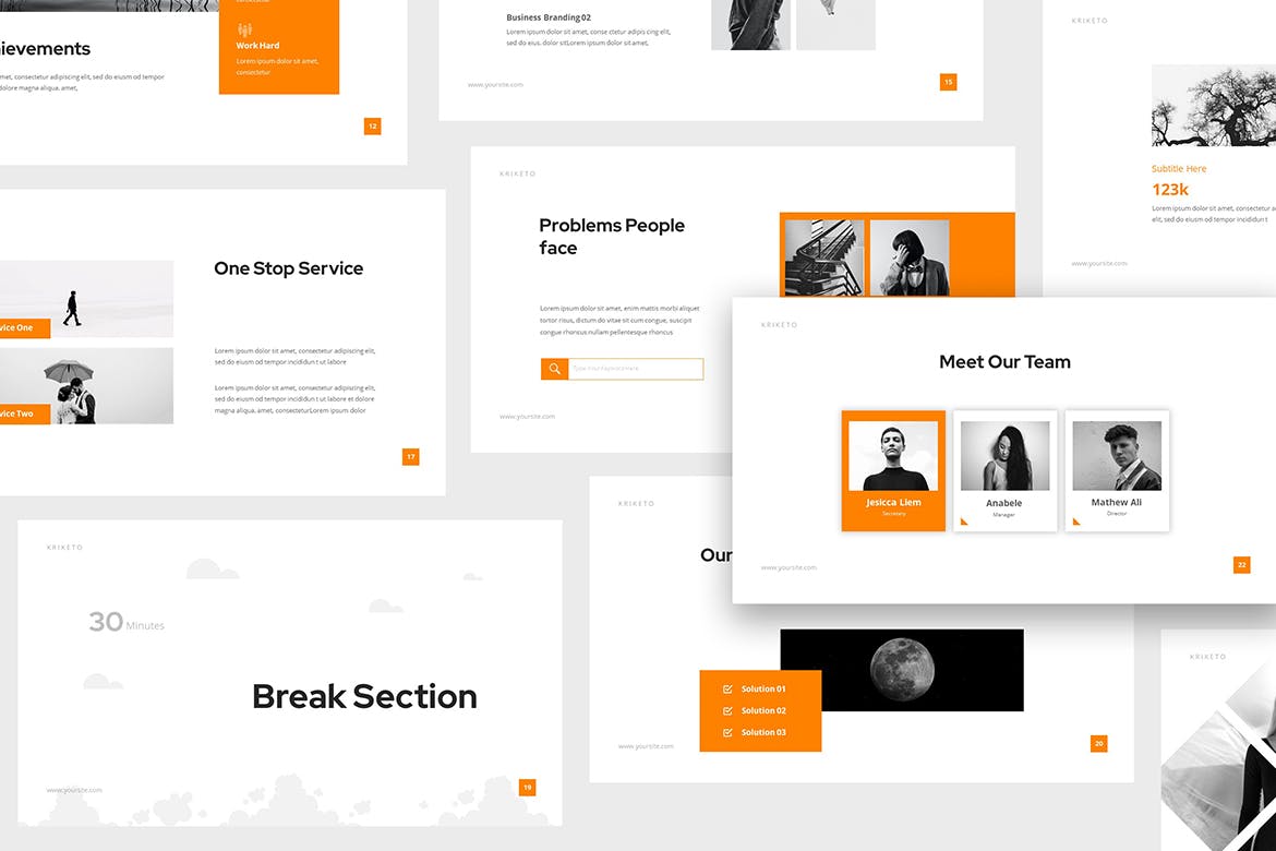 这款演示文稿是一个极简主义现代企业商务演示文稿模板,带有一个扁平的设计元素,并容易更改颜色。赶紧下载,让你的演示脱颖而出!