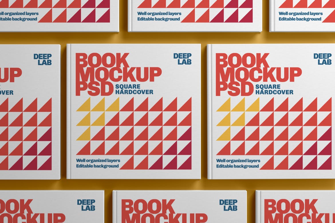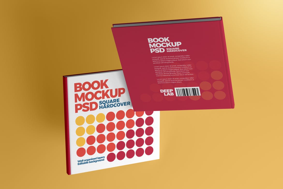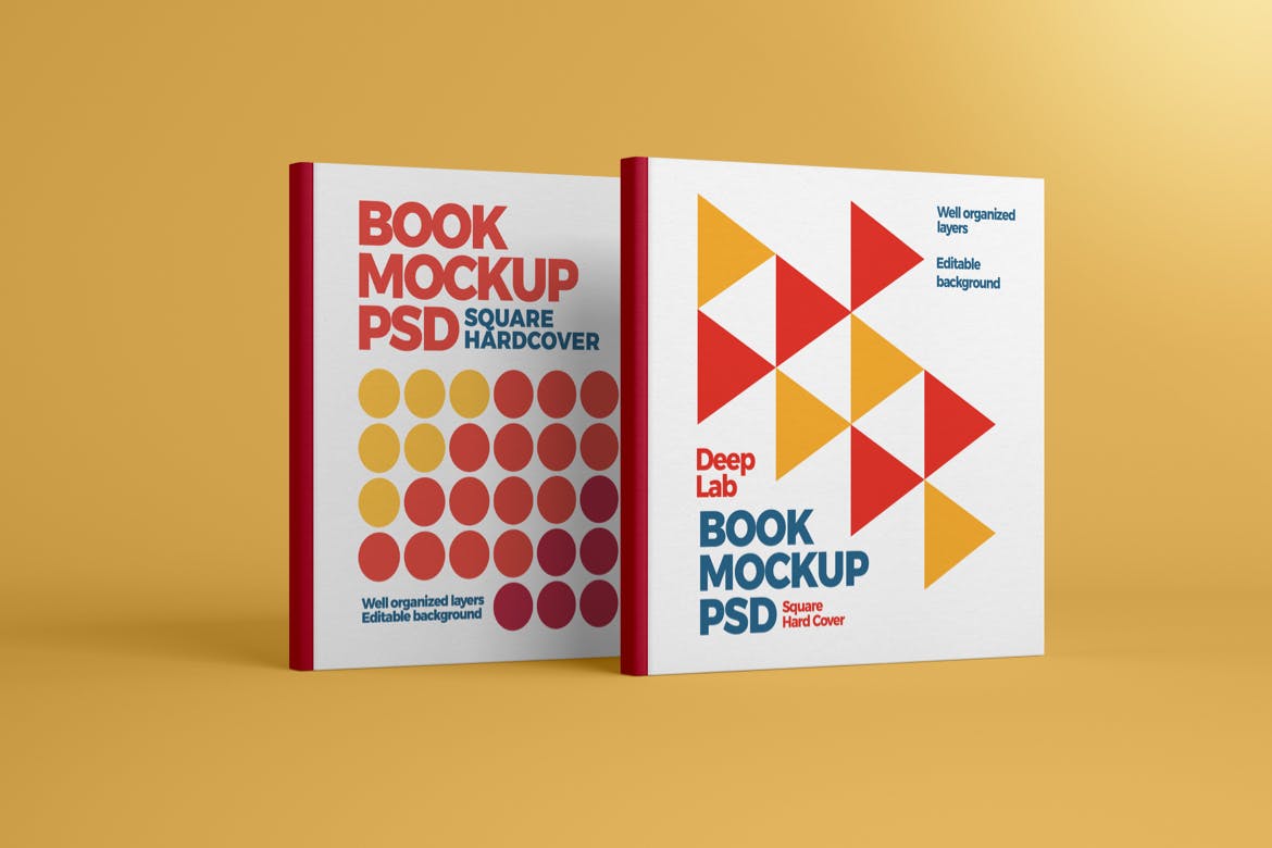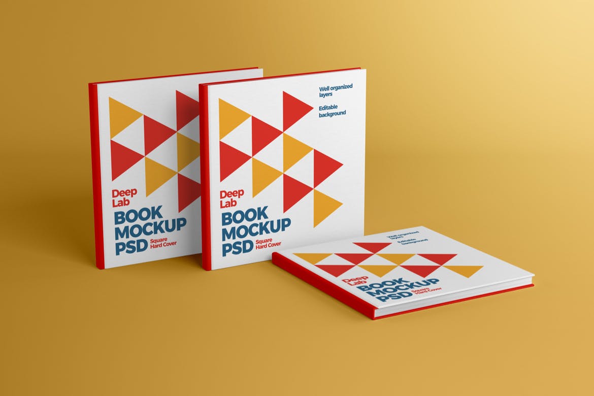 方形图书&书籍样机集,是出版商,作家,当然还有网页和图形设计师的宝贵工具。只需点击几下智能对象,就可以给您带来终极的书籍封面设计,或者只是展示您的创意。该PSD文件正在使用智能对象,因此您可以轻松快速地替换图书样机内容。