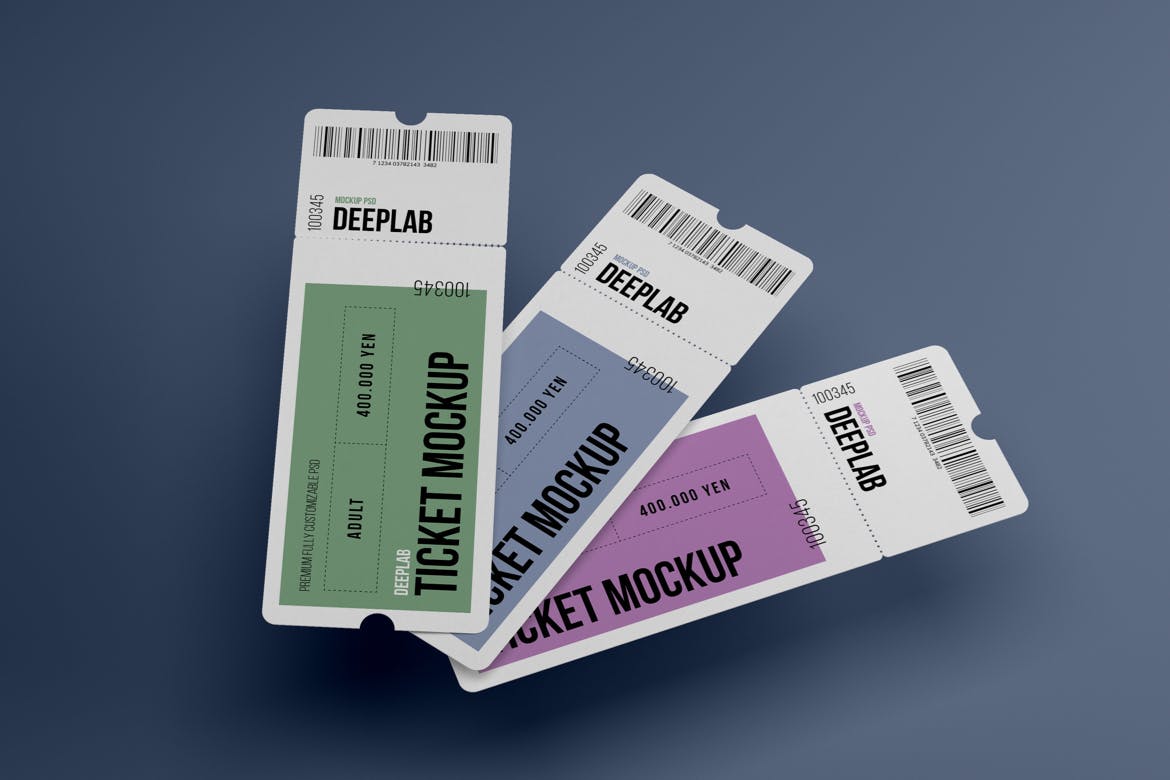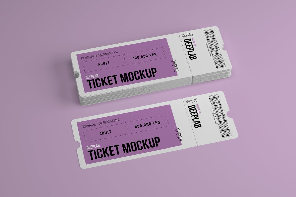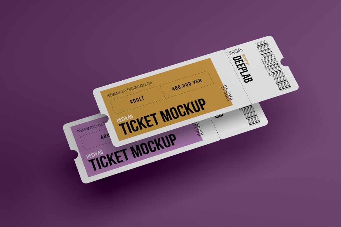 展示您的活动入场券设计!在几秒钟内创建一个逼真的演示。该入场券样机使用了智能对象功能,因此您可以轻松快速地替换样机内容。您只需要双击智能对象,粘贴您的图稿,保存,就可以完成。