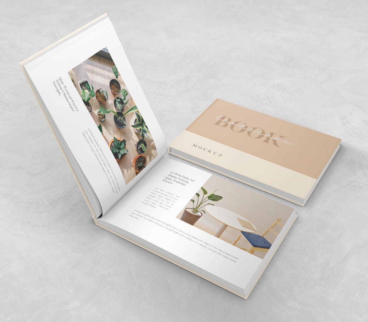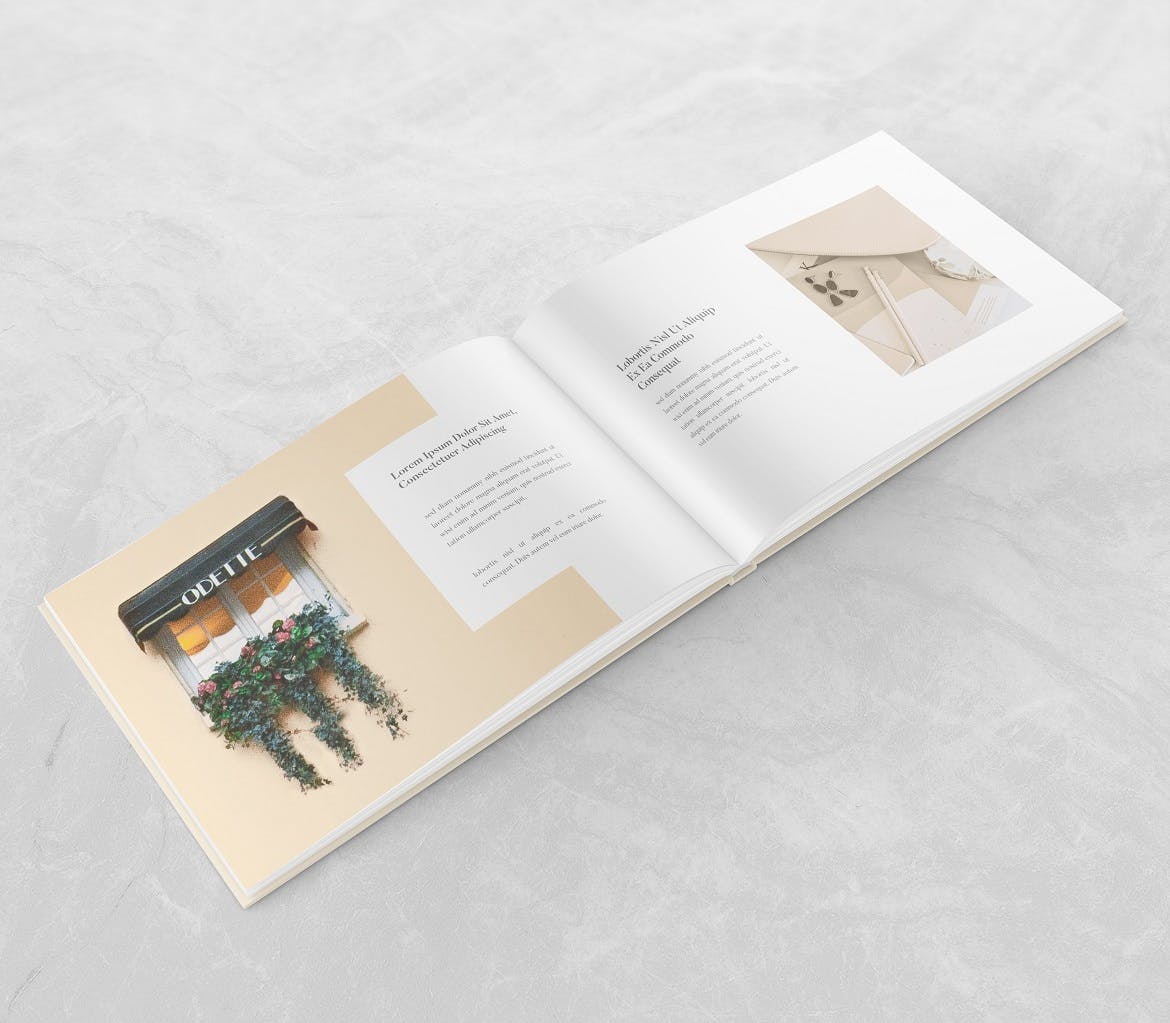 专为杂志、目录设计以及一般演示而创建的横版规格画册杂志设计样机模板。