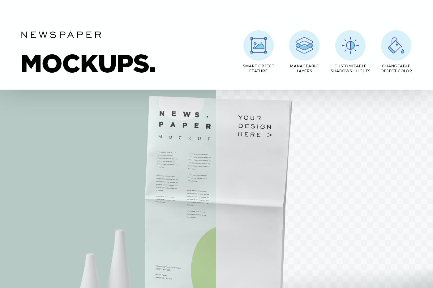 使用这些复古风格的报纸效果图样机在真实的报纸上展示您的印刷广告设计。 这些报纸样机为所有定制提供智能对象和命名层。