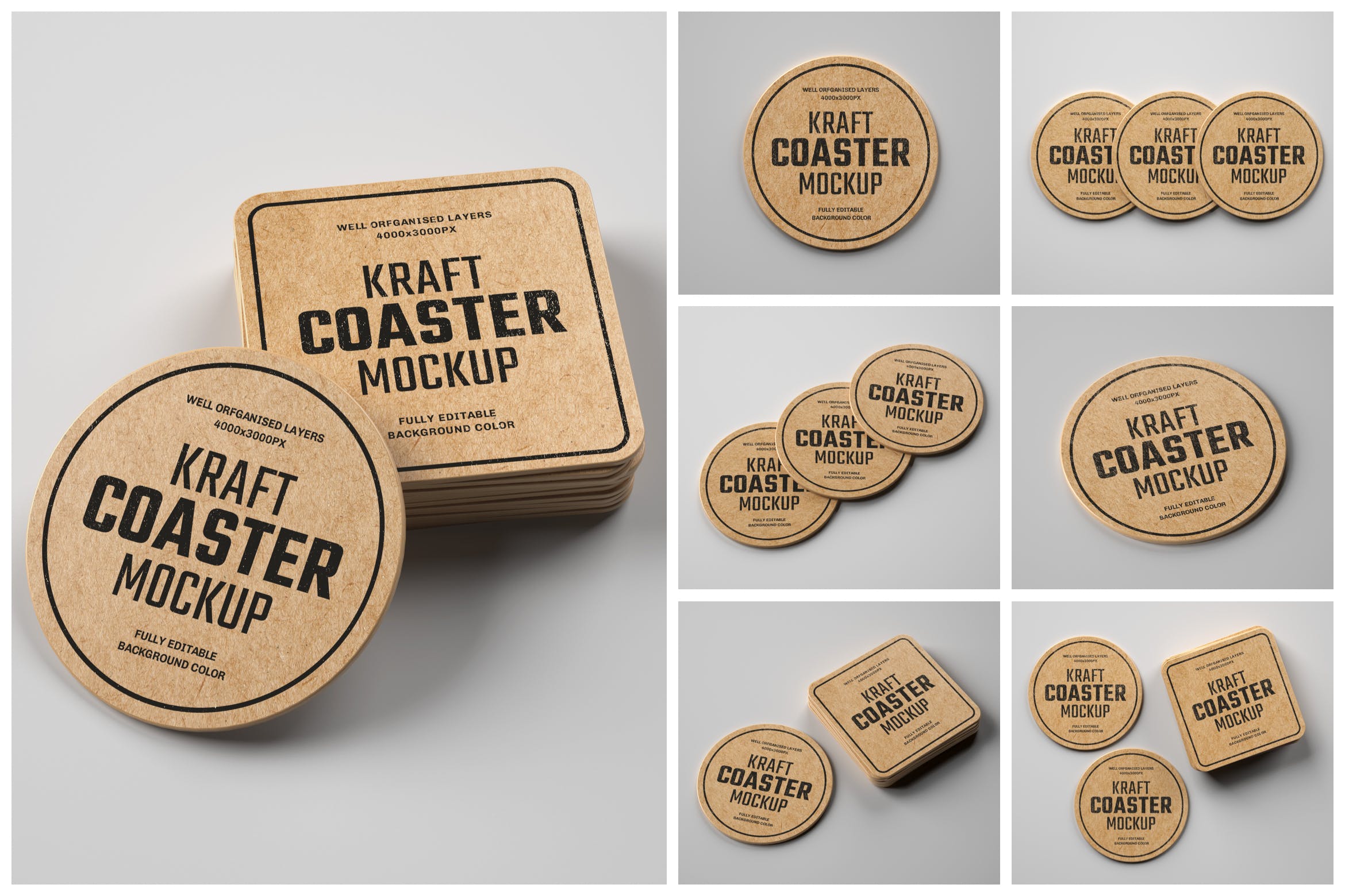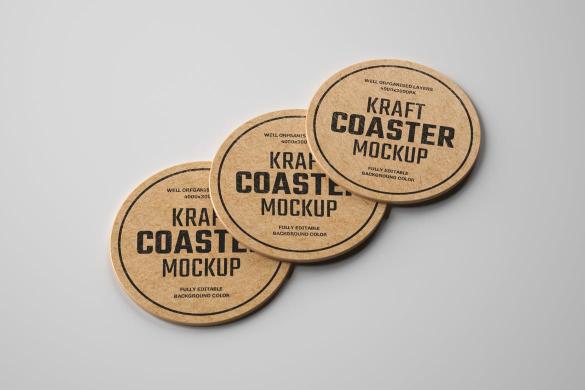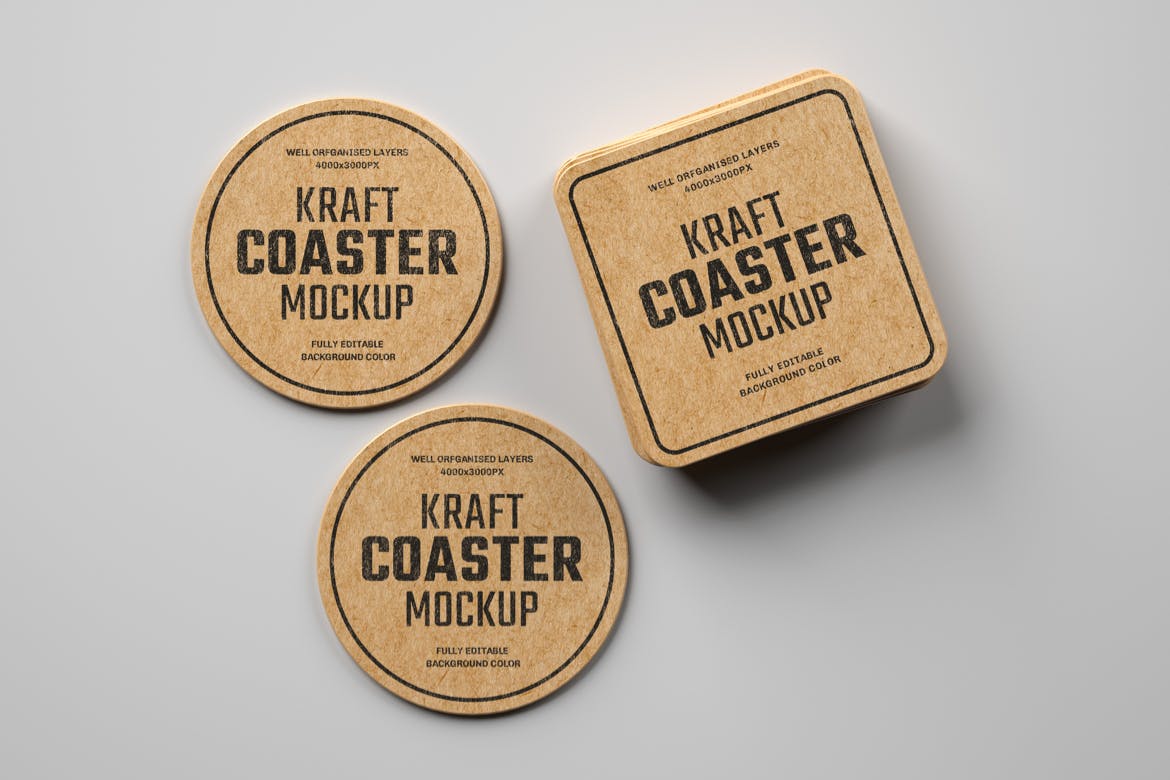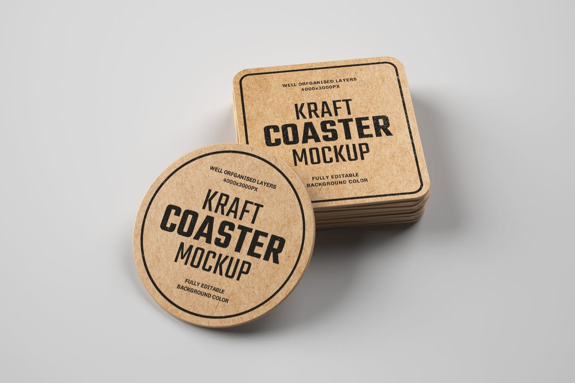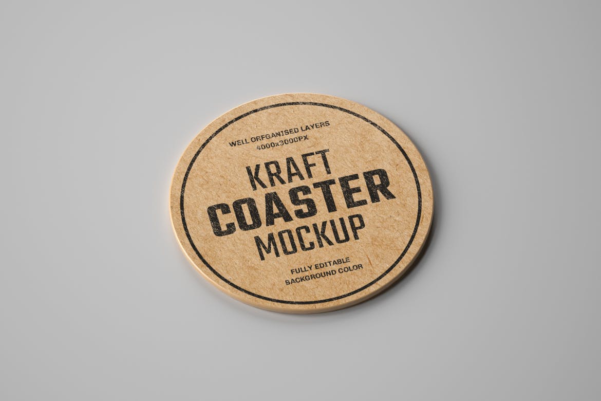 在此完美的复古牛皮纸杯垫样机上以更有效的方式显示您的品牌标签设计,用于咖啡店、酒吧、水品牌、果汁、餐厅等的品牌设计。包含7个视图的高级样机,包括7个PSD文件。通过智能对象轻松个性化您的品牌或其他印刷设计,并将背景更改为任何颜色。