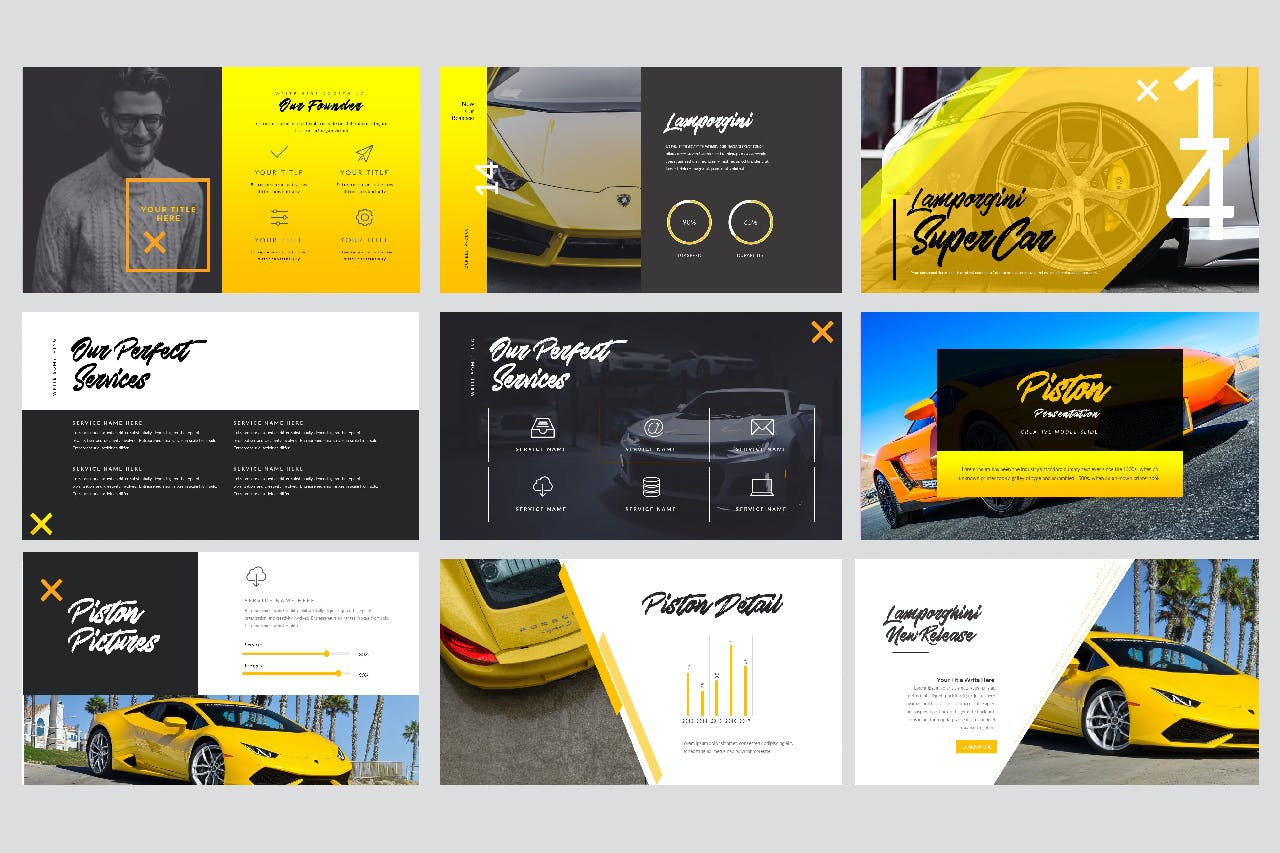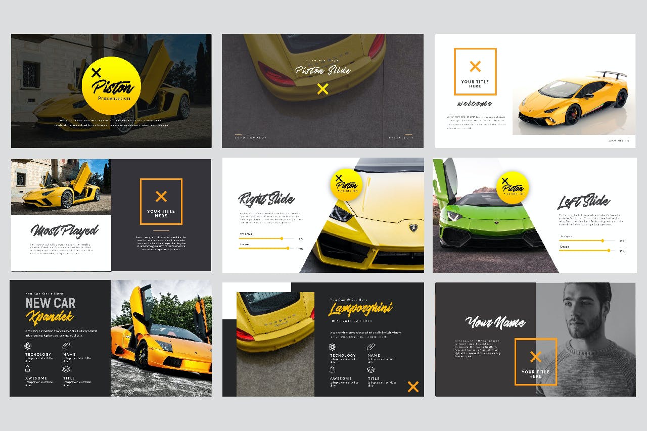 创意,高级,扁平,干净,极简主义,优雅和灵活的演示模板,适合汽车商店、创业、公司演示和个人使用。很容易改变配色方案。