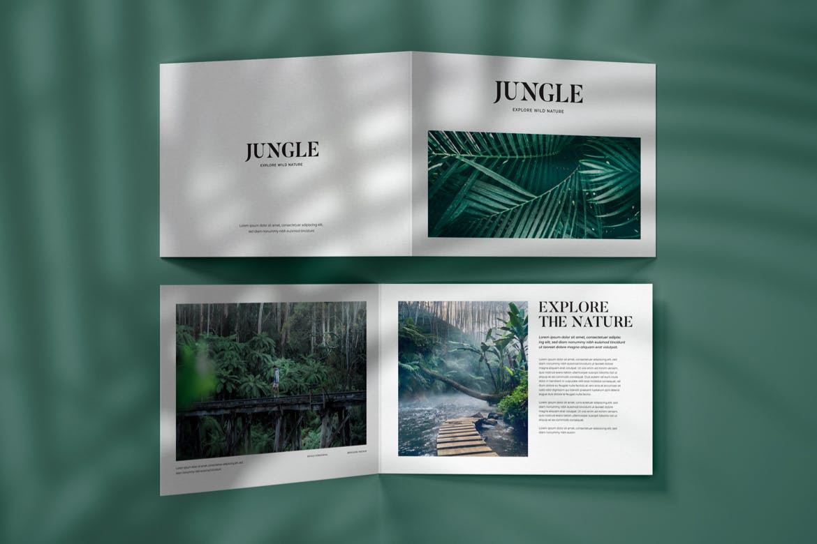 横版双折页小册子设计样机模板v2,此完美的小册子样机可为图形设计师、印刷、杂志、广告等进行编辑设计,从而更有效地显示您的设计。可通过智能对象轻松地个性化传单或其他印刷设计,并将背景更改为任何颜色。