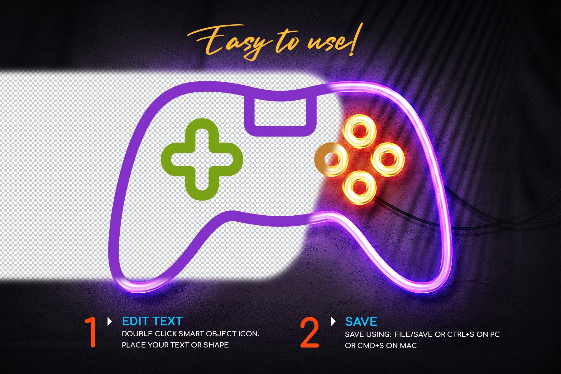彩色霓虹灯效果从您的文字,标志,形状或任何层。非常容易使用。