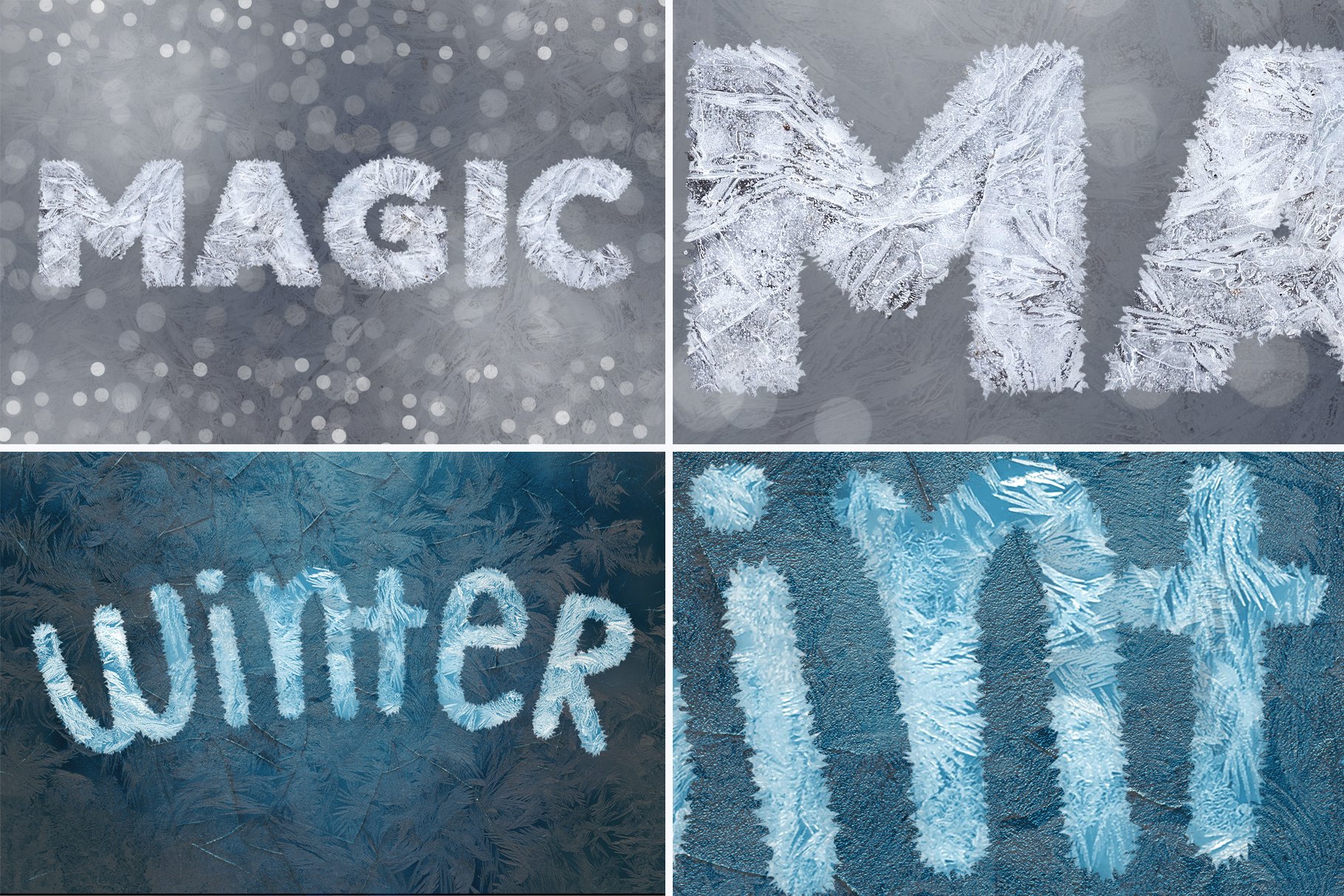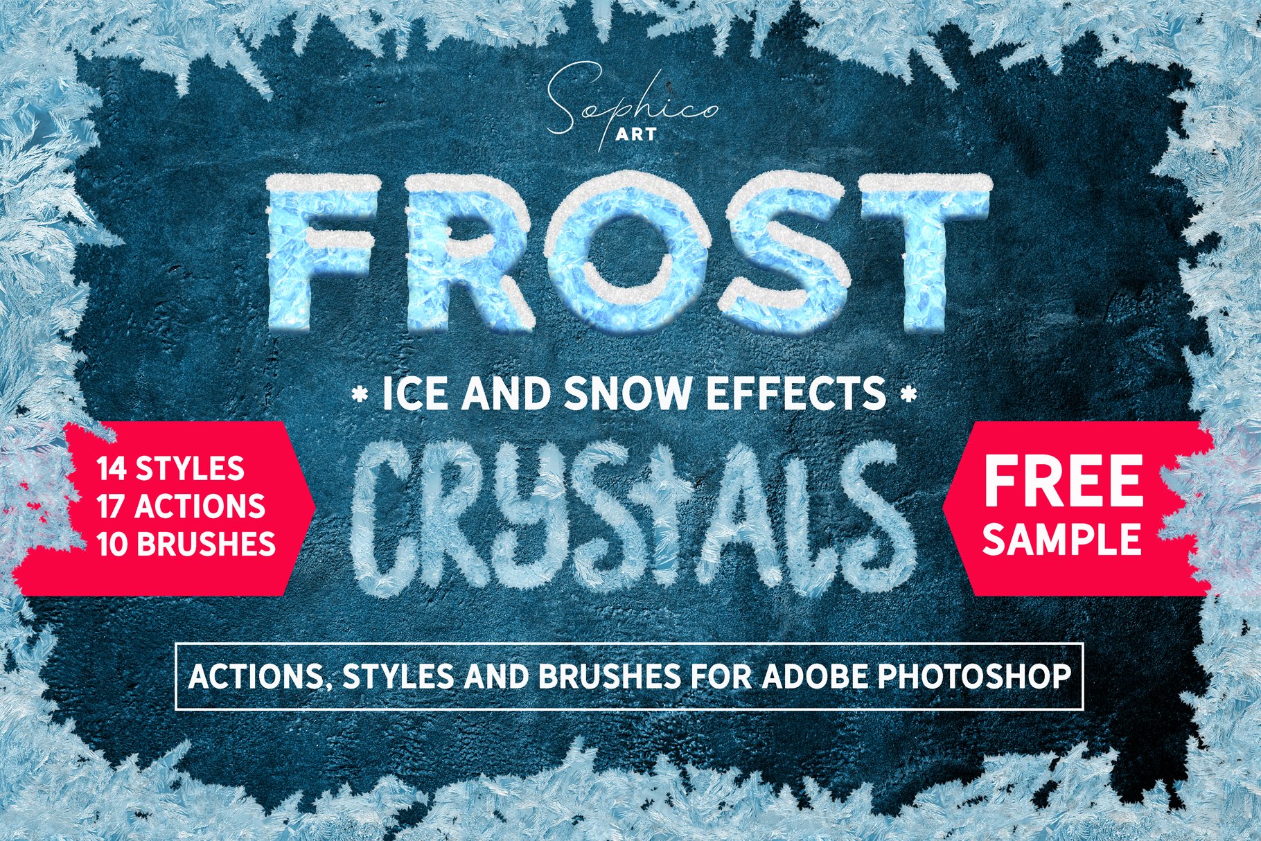 以Adobe Photoshop的动作、笔刷和图层样式创意集为您呈现“霜冻”和新鲜感。在单独的图像或文本上使用这款霜冻效果素材可获得逼真的冰、雪帽、冷冻晶体效果。