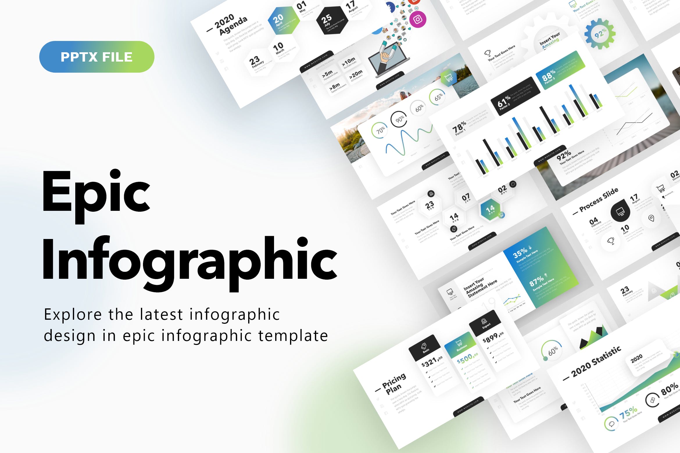 **Epic Infographic Presentation Template**结合了各种设计方面和可用性,使公司简介模板更具吸引力。每张幻灯片都很有用,功能也更强大。不再有无用的形状和信息图表。想象一下,一个包含数百张有用幻灯片的完整演示模板。非常适合公司简介业务和主题