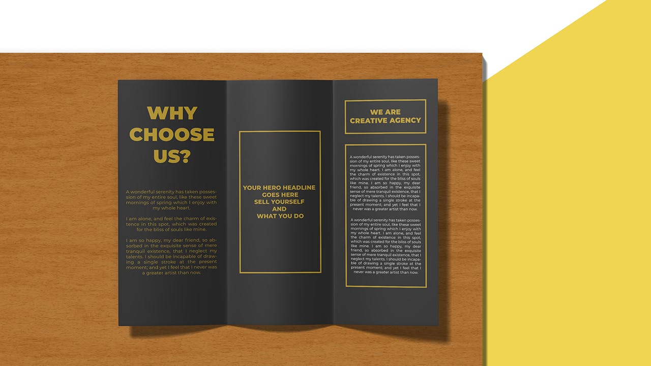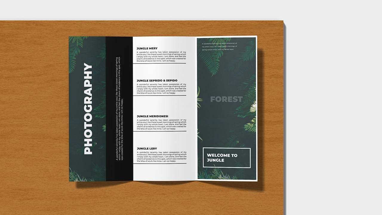 通过此外观新颖的2个视图三折页宣传册样机展示您的宣传册设计。使用Photoshop中的智能对象功能可以很容易地进行应用。因此,您可以在几秒钟内完成设计。将使用结构良好的图层创建样机。