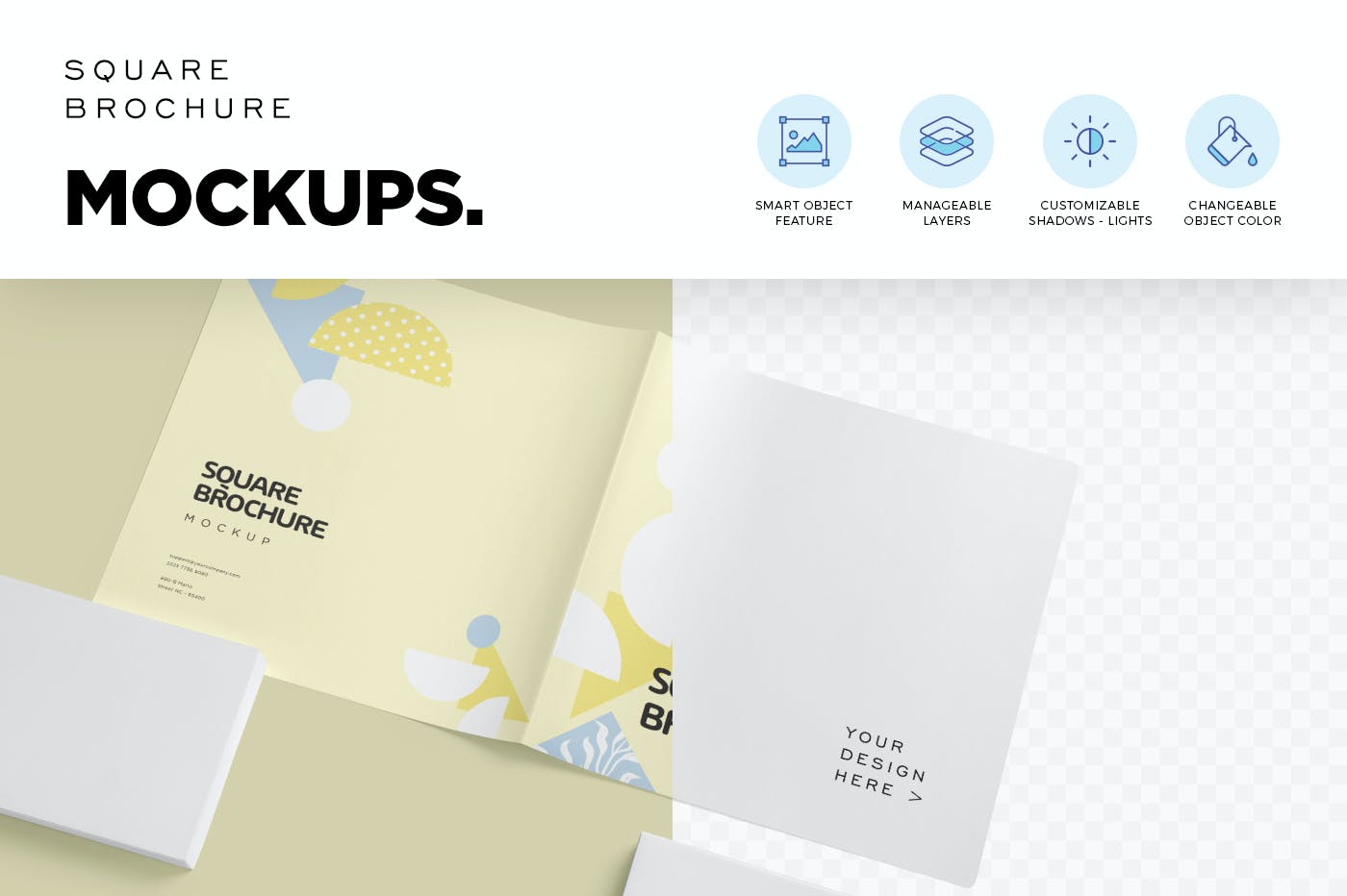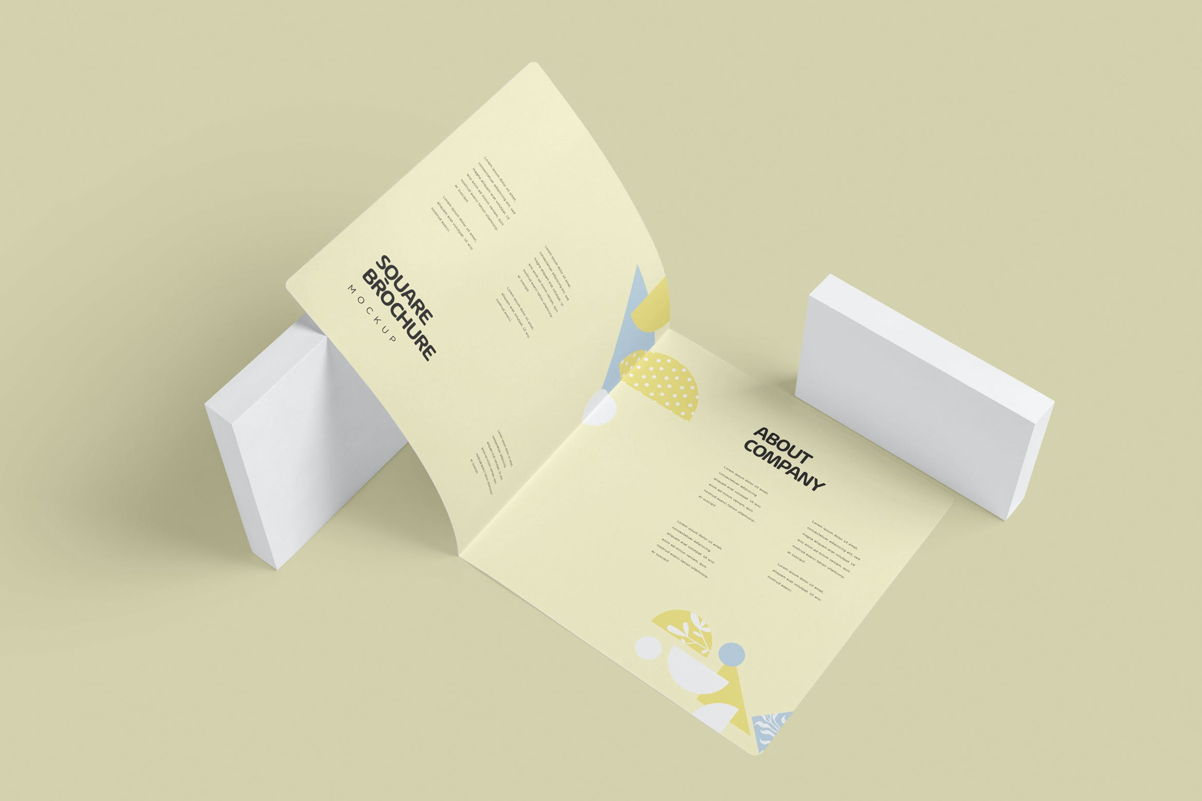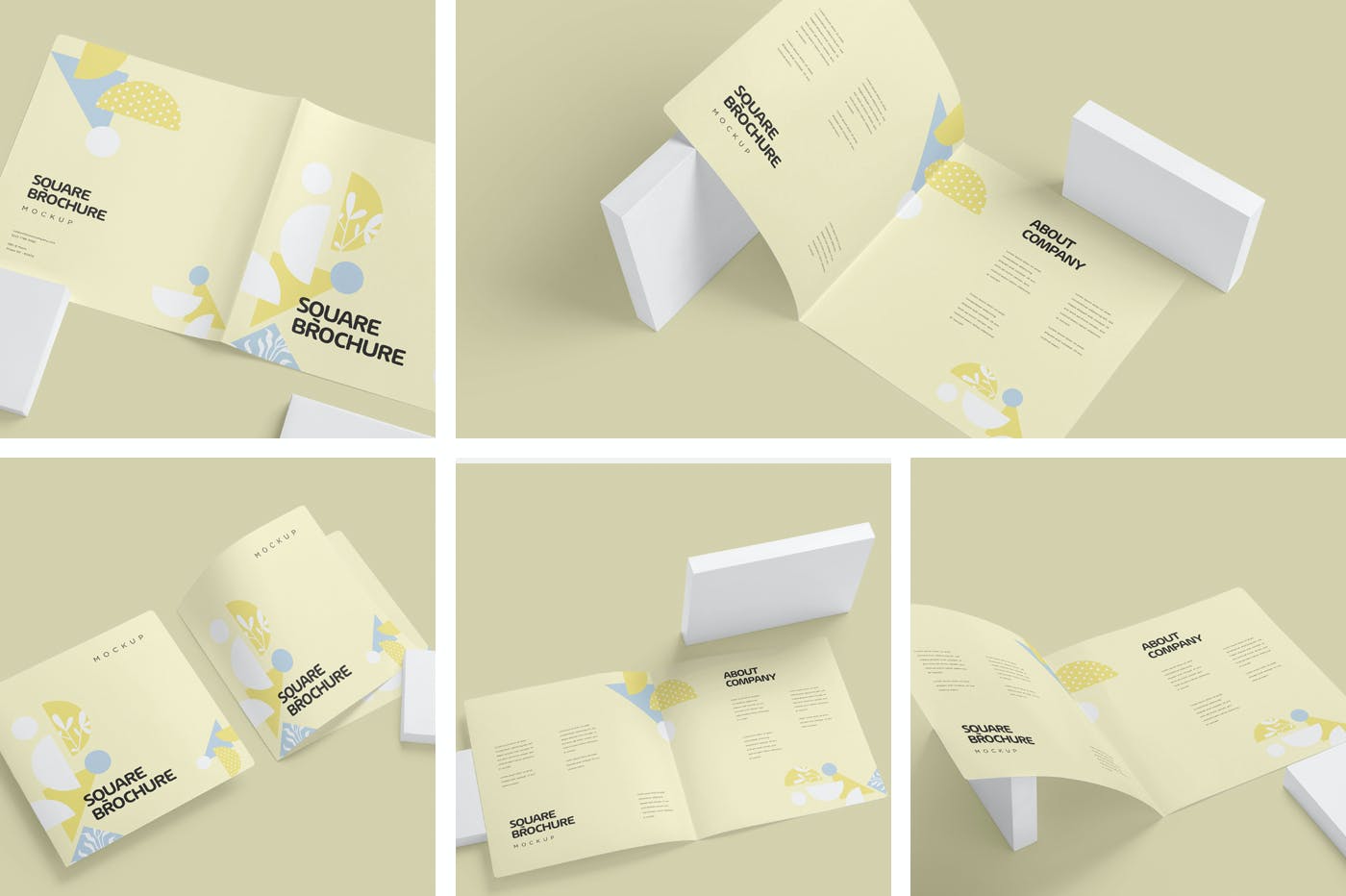 使用这款双折页方形宣传册效果图样机,可以真实地展示您的印刷广告设计。 它提供5个不同的PSD来显示您的宣传册设计。 所有的宣传册样机都是智能对象操作的,因此您只需单击即可将任何设计添加到这些样机中。