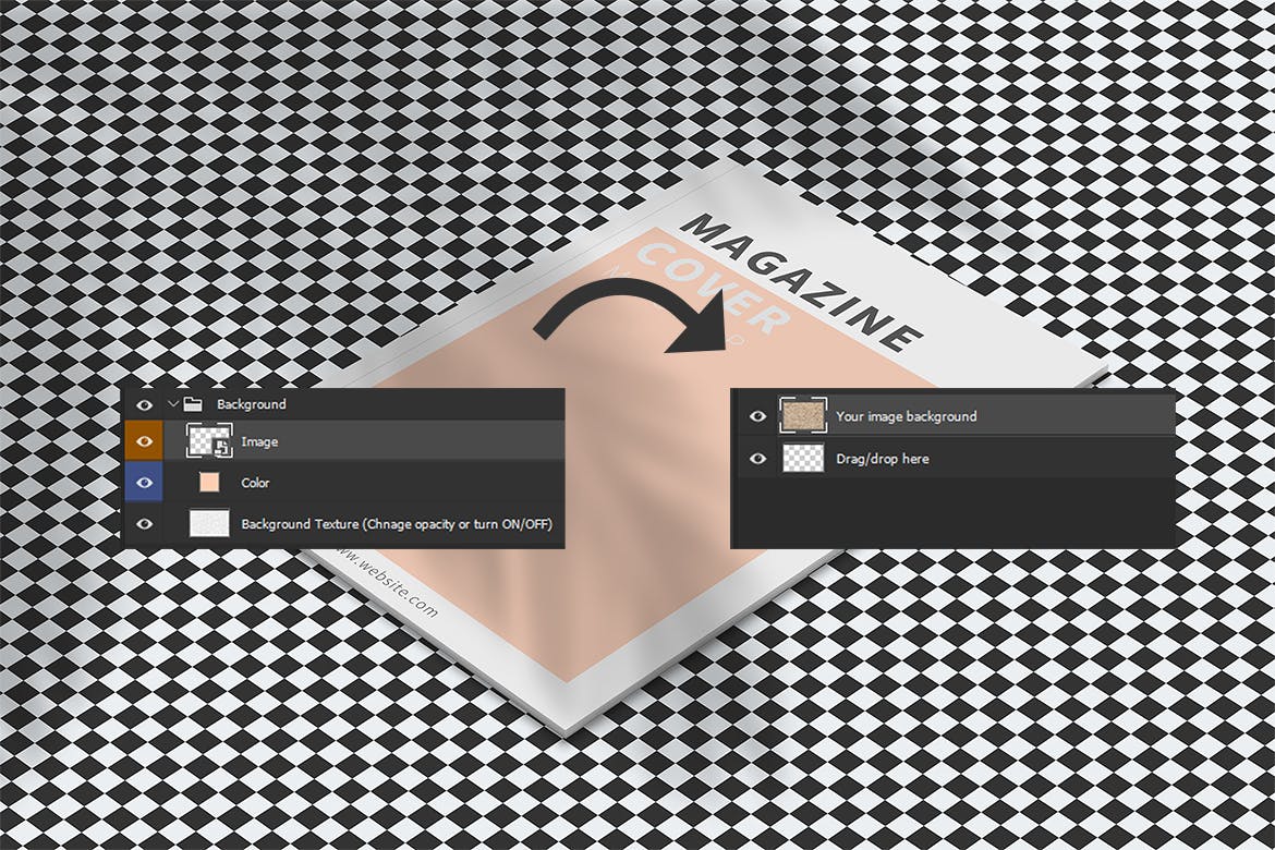 A4杂志模型是一个极简主义的杂志模型,用photoshop来展示你的A4杂志设计。这个模型很容易使用,因为使用photoshop的“智能对象”在智能对象层双击,然后拖放你的图像,这个模型有一个无限的功能,可以改变它的背景颜色。此外,您还可以自定义背景图像。