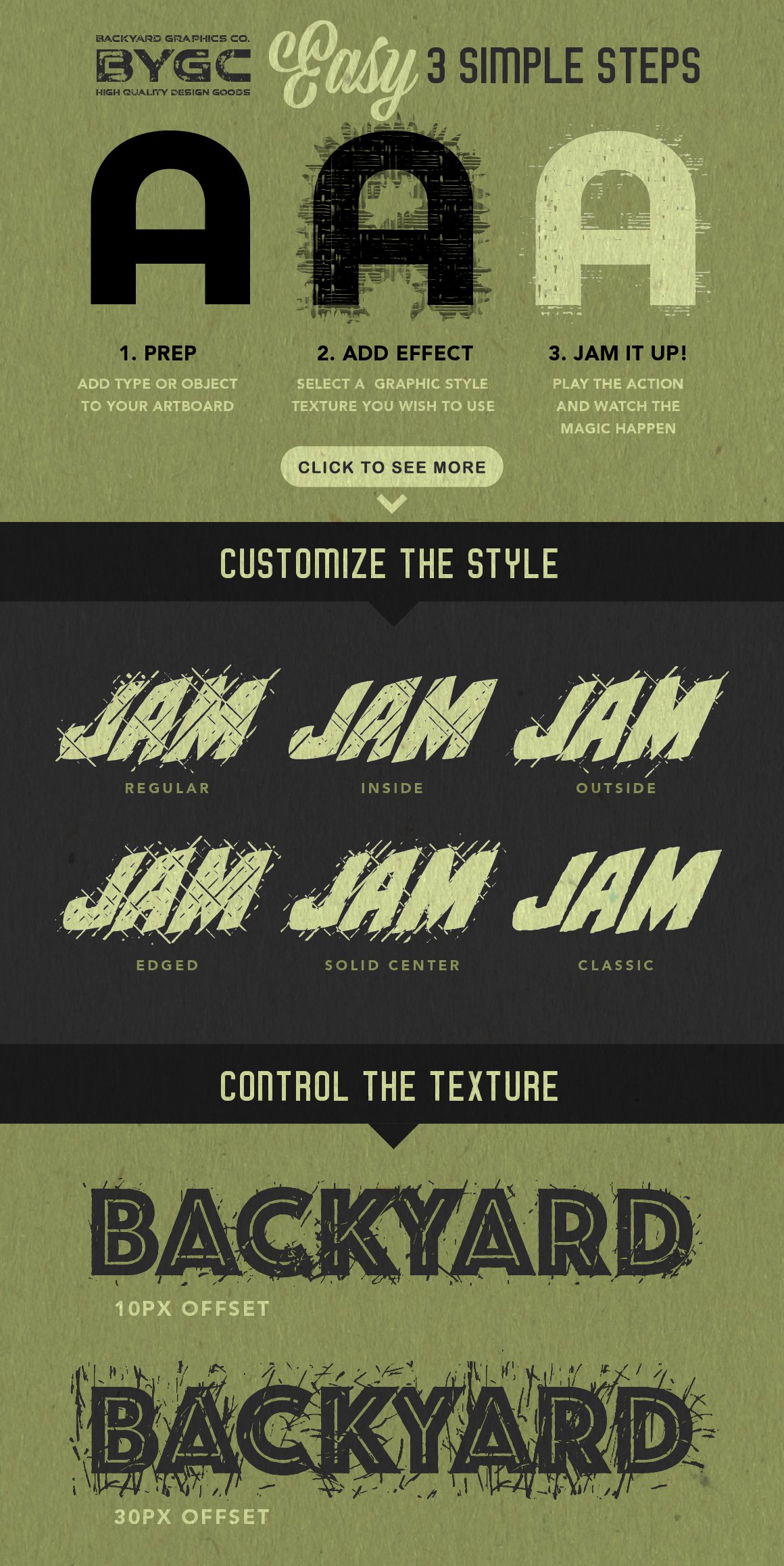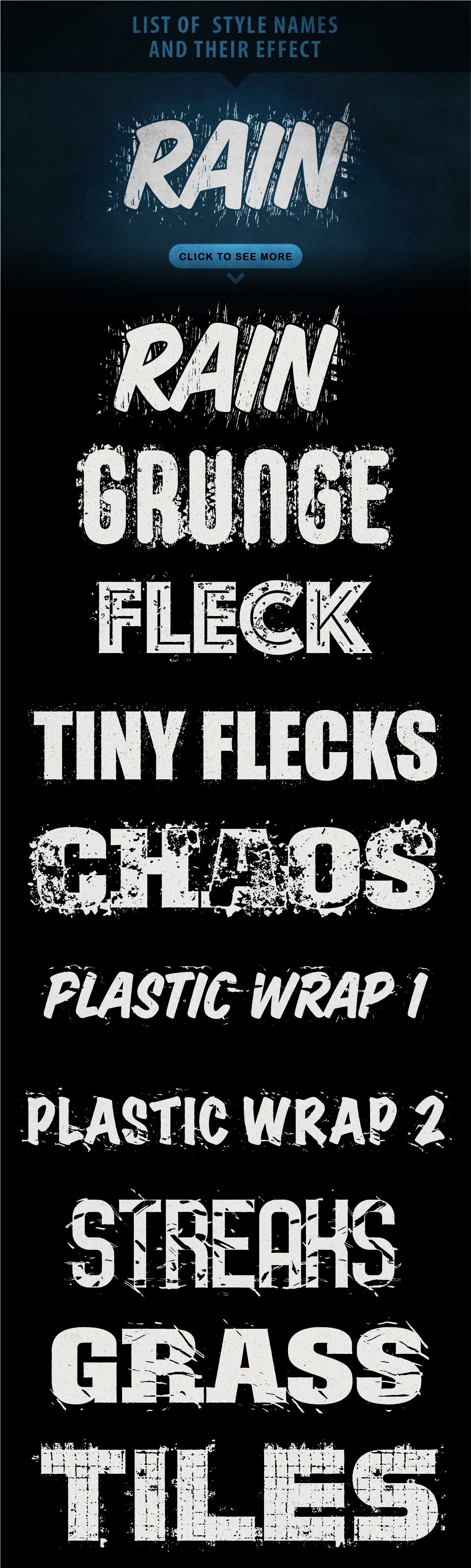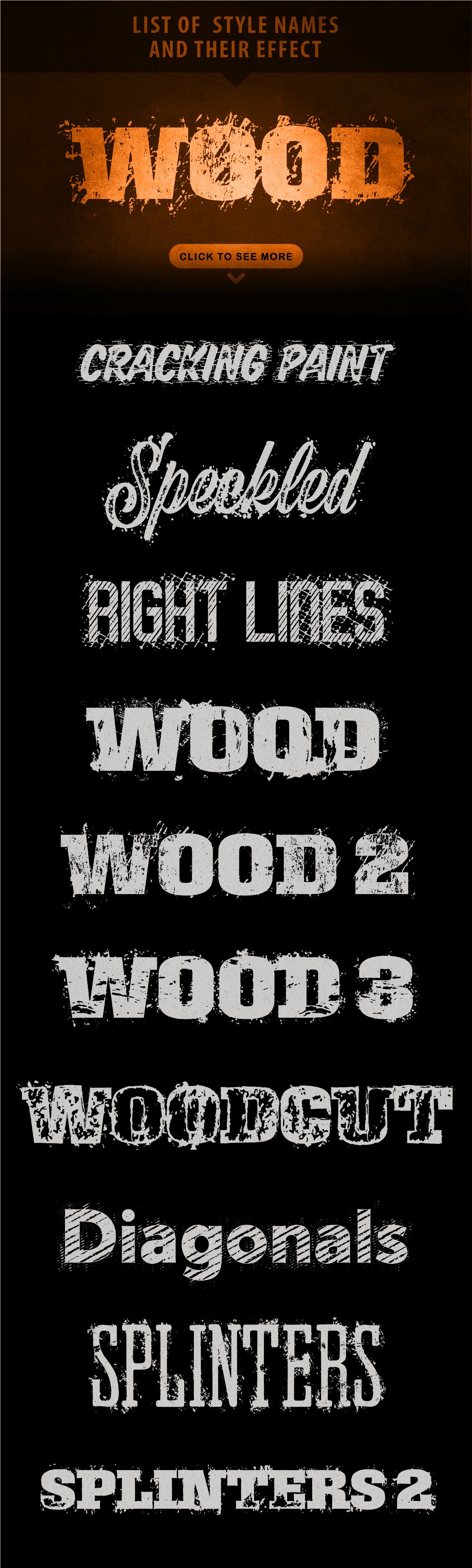 这些墨水印记效果会让您震惊。在Illustrator中使用60多种图形样式。保留所有矢量并将其缩放为所需的大小。这些图形样式将使线条模糊,并为您的徽标或形状提供足够的粗砂纹理。包括木材,铁锈,气泡,火花等纹理。
