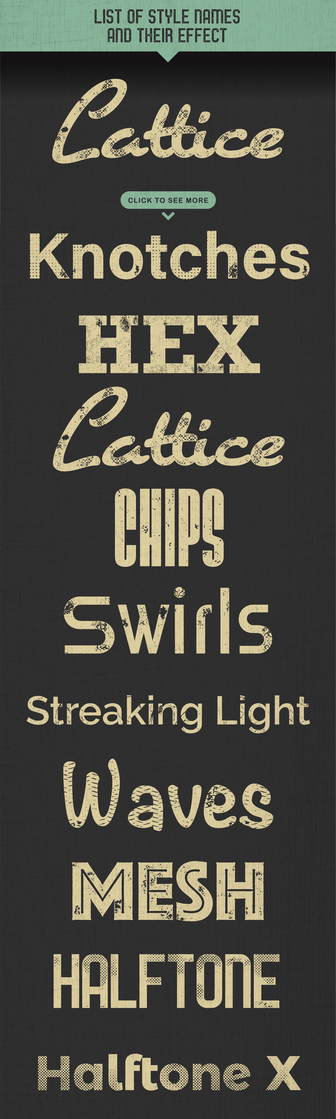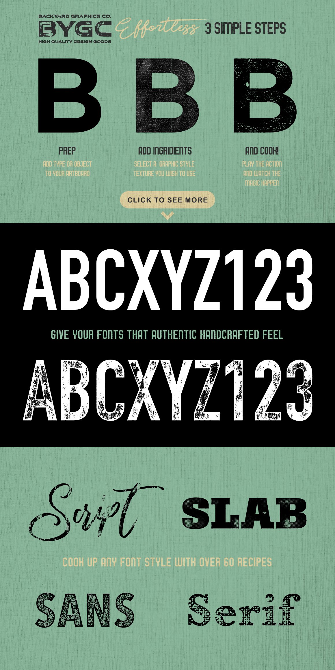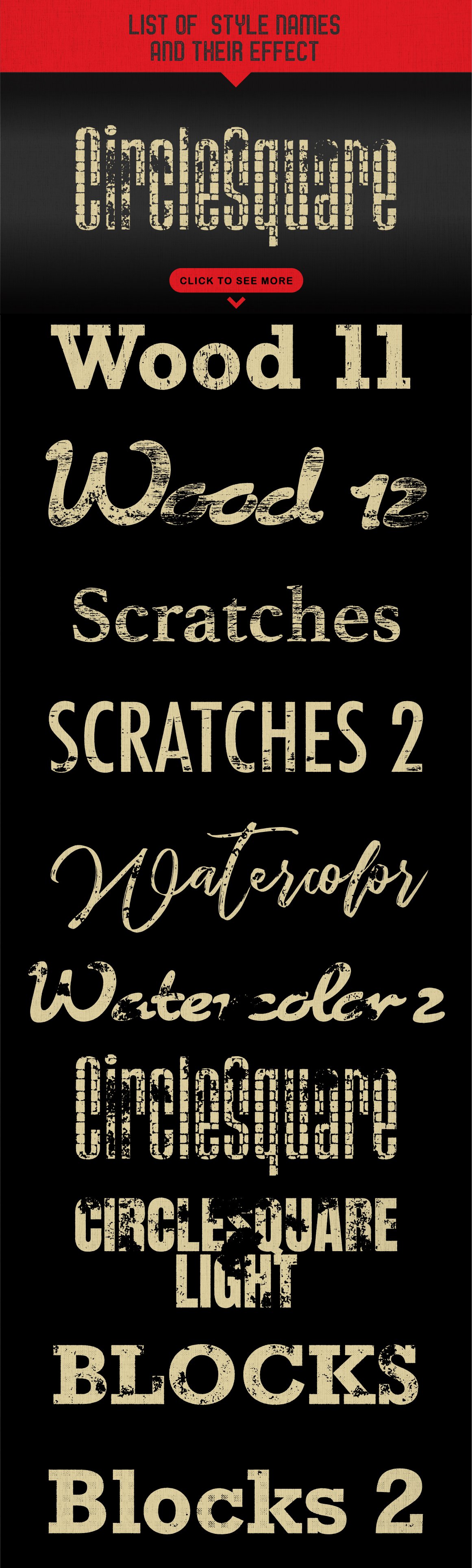 该素材包括60多种图形样式(半色调,木材,混凝土,油漆脱落,表面划痕等)、色板和动作,可以按真实的手作感觉按和设计您的文本,徽标或复合路径。适用于徽标,徽章,手刻字,类型,形状和复合路径。可通过控制边缘压痕,纹理比例,边缘嵌入和圆角来进行自定义。
