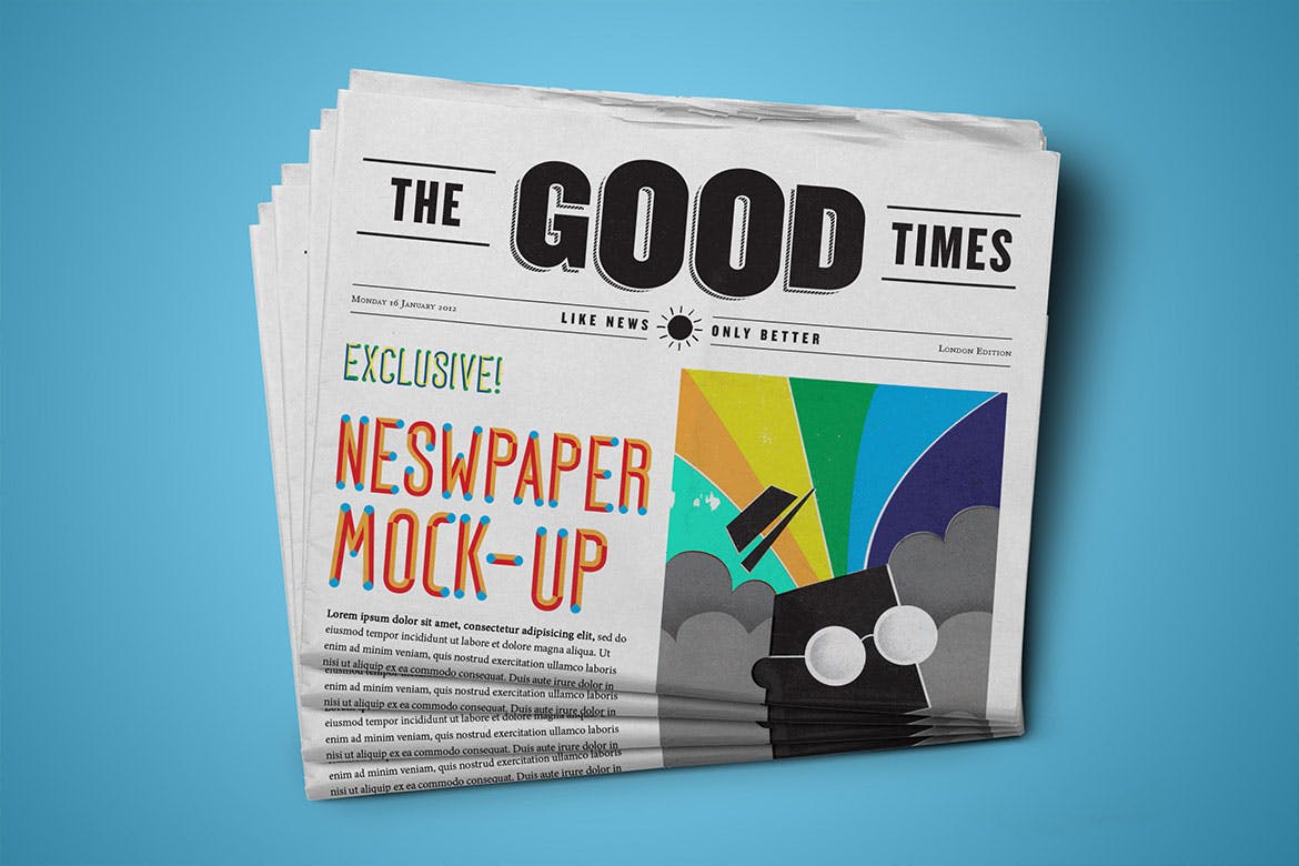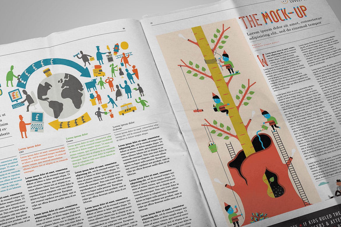 新闻报纸排版设计效果图样机模板: