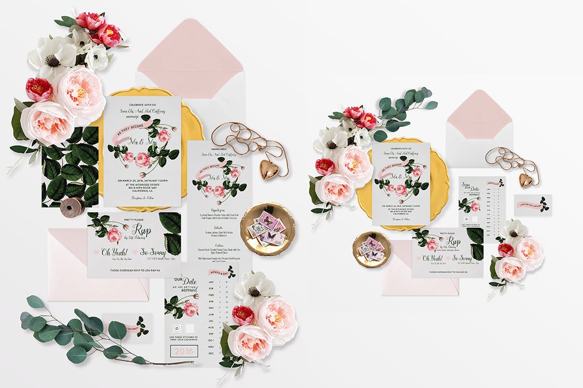 获取这些超棒的植物花卉场景邀请函样机,以逼真的设置来展示您的邀请函设计。所有对象都是可移动的并且可以自定义,您可以更改阴影,颜色,效果和背景。