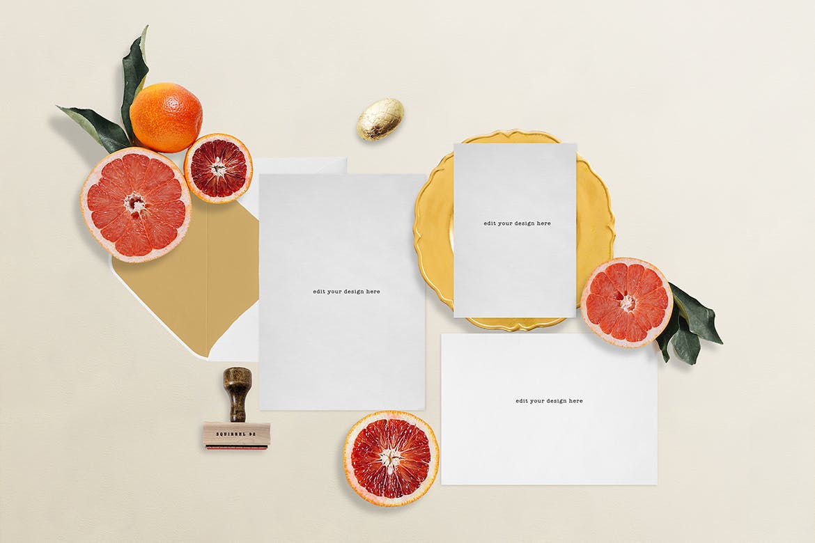 获取这些超棒的柑橘装饰元素邀请函样机场景生成器,以逼真的设置来展示您的邀请函设计。 所有对象都是可移动的并且可以自定义,您可以更改阴影、颜色、效果和背景。