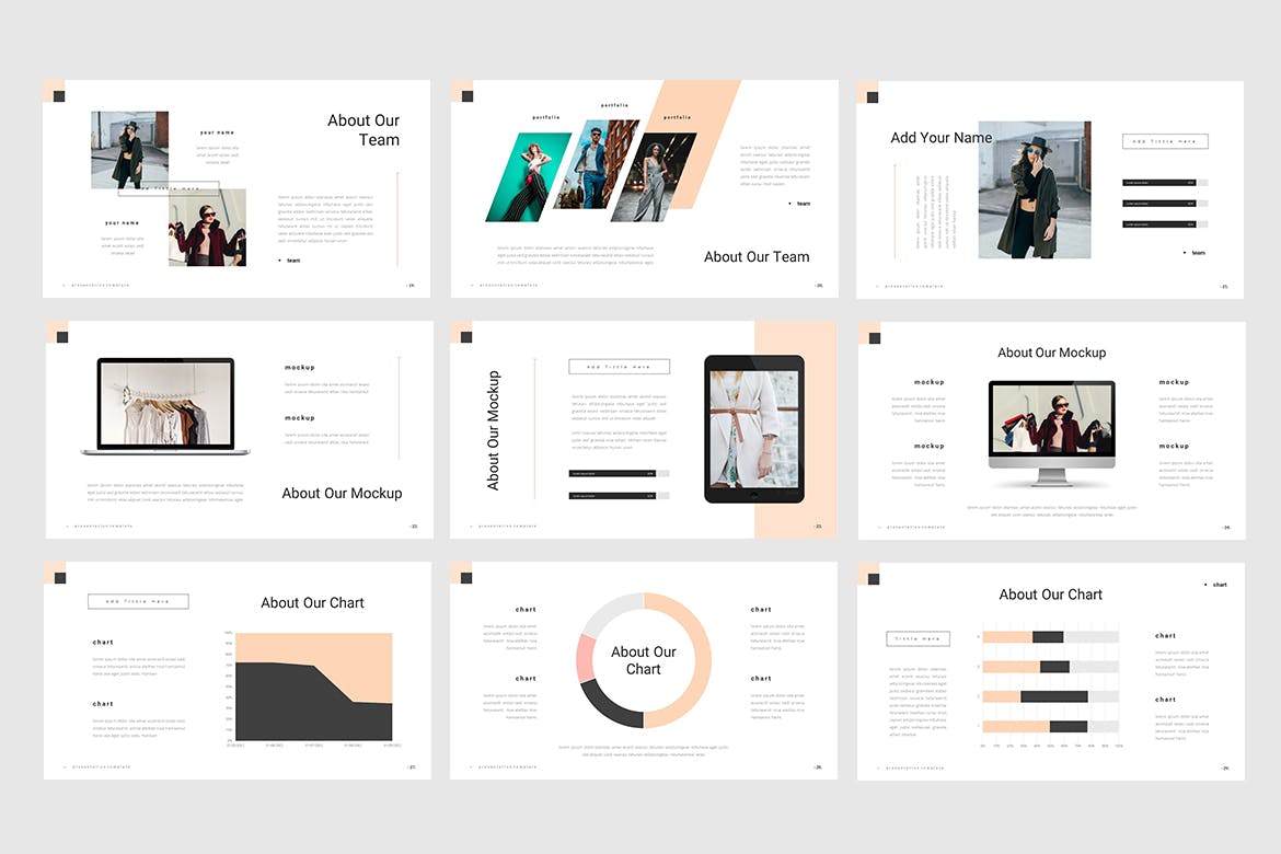这次老不湿分享的是,时尚高端简约清新多用途powerpoint幻灯片演示模板(pptx&keynote),整洁的布局将使您的内容结构化并以正确的流程呈现。Microsoft PowerPoint,主题演讲,Google幻灯片中提供了3种不同的文件格式。幻灯片也很容易编辑。