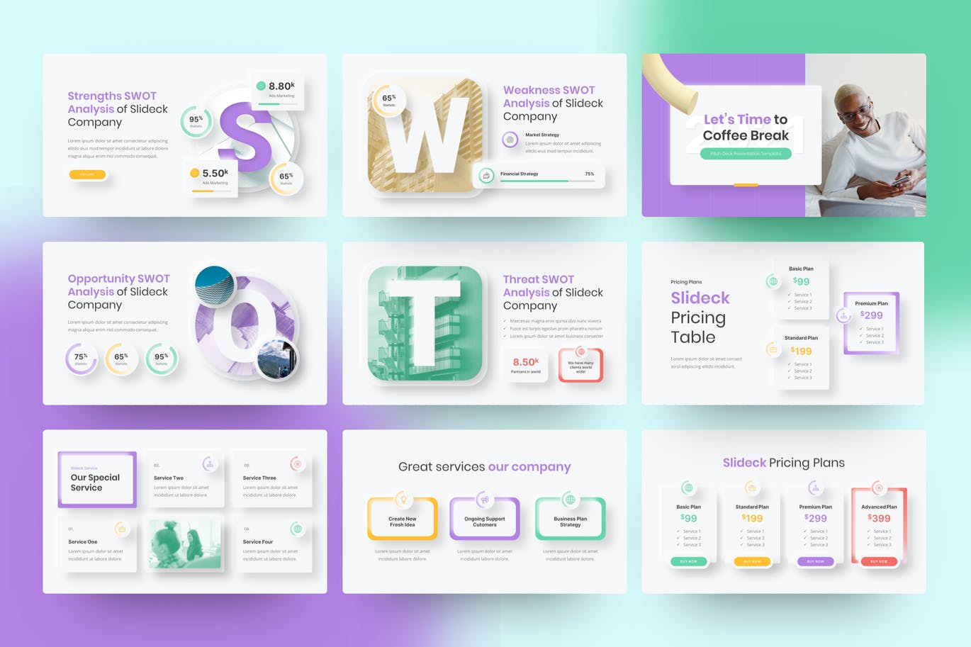 这次老不湿分享的是,时尚清新简约多用途带有swot分析powerpoint幻灯片演示模板(pptx),该演示模板可以用于创意工作室,代理机构,公司,公司,投资组合,摄影,也可以用于个人投资组合。此演示模板包含现代,典雅,创意,专业和独特的布局。