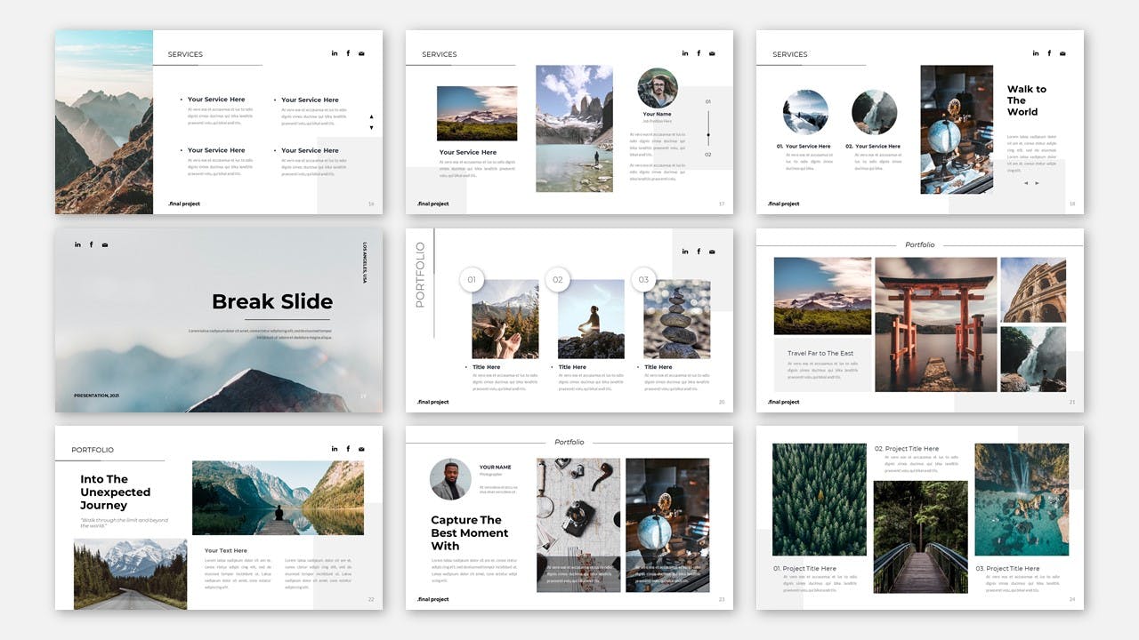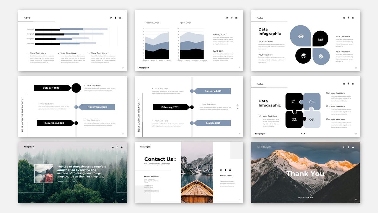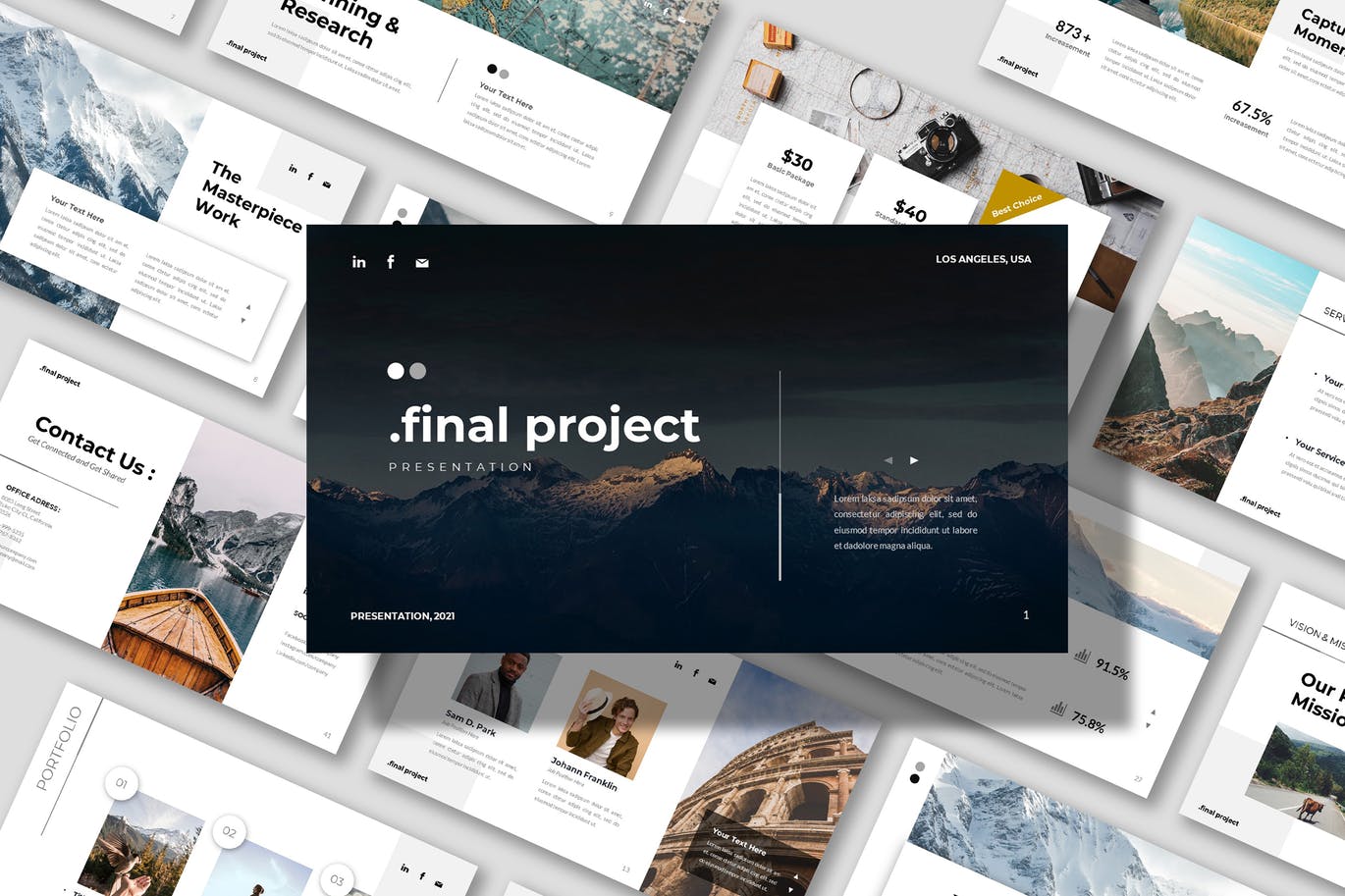 这次老不湿分享的是,时尚高端简约多用途的powerpoint幻灯片演示模板(pptx),该演示模板可以用于例如创意代理,公司简介,公司和业务,投资组合,音高甲板,启动,也可以用于个人投资组合。
