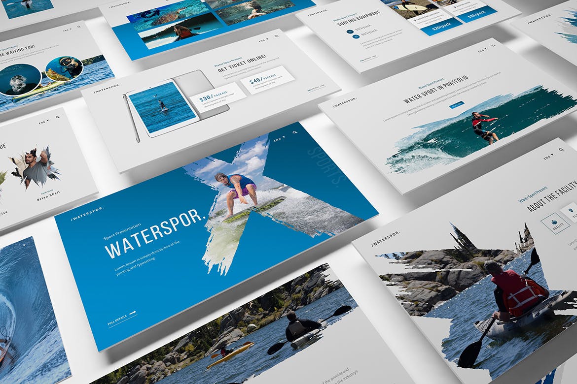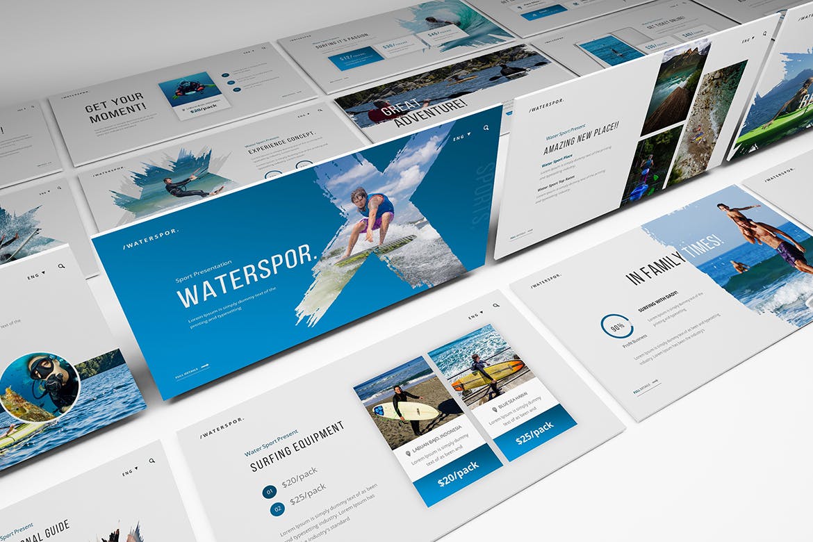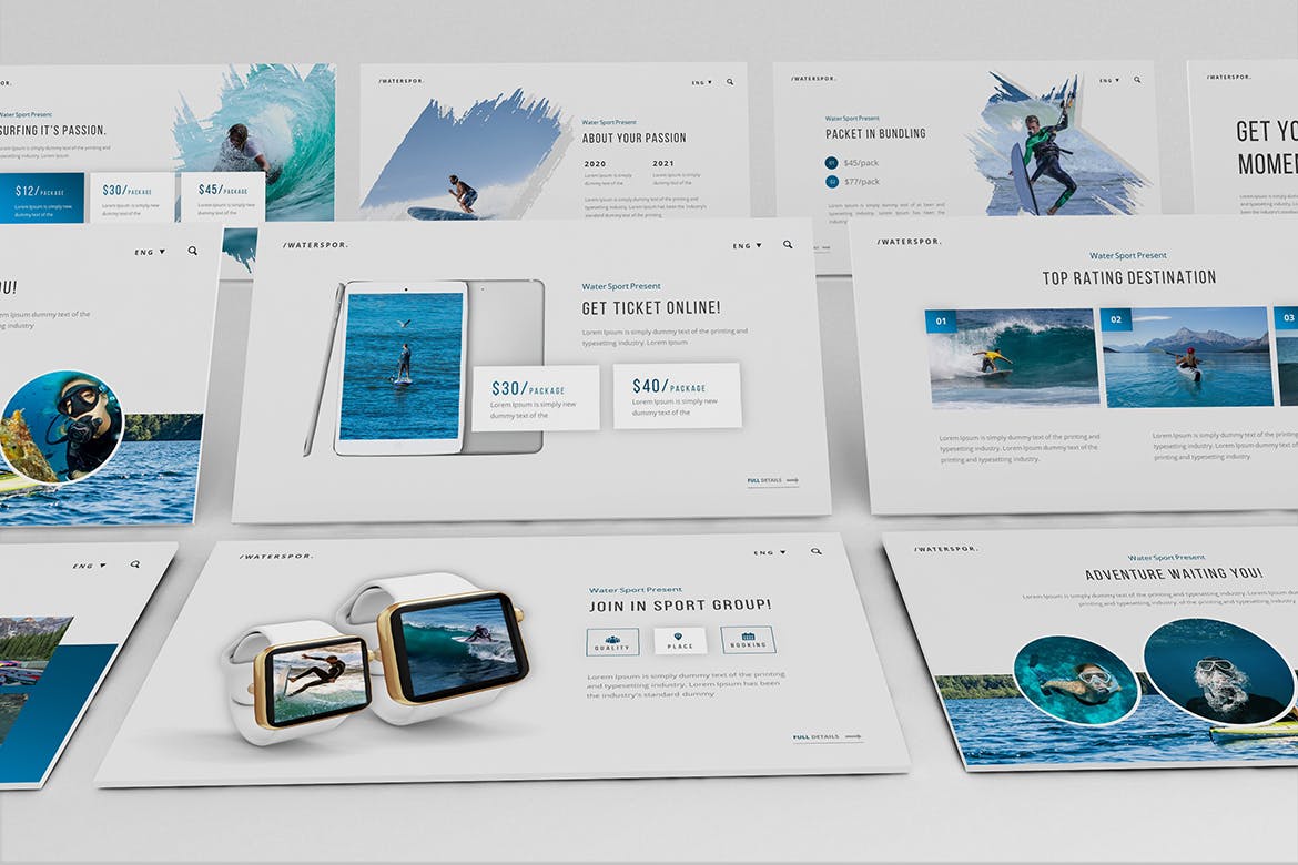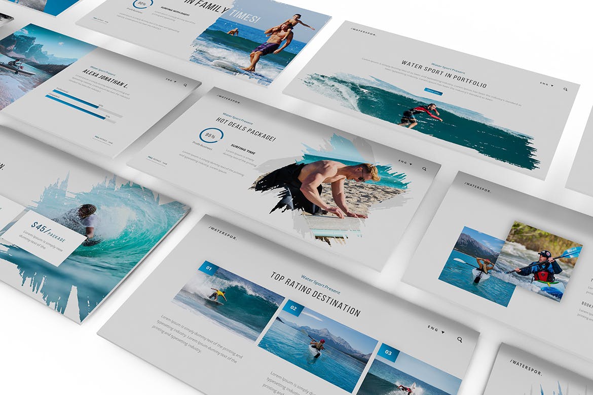 这次老不湿分享的是,时尚高端简约水上运动PowerPoint演示模板(pptx),平面和简约的设计使您的演示文稿脱颖而出,具有简单,干净和简约的设计理念。用于高质量的品牌展示资产。