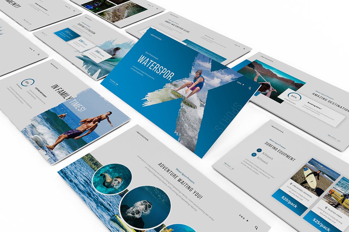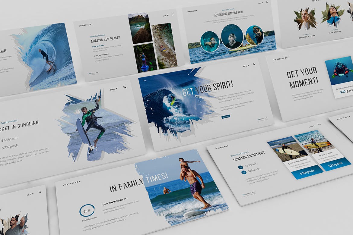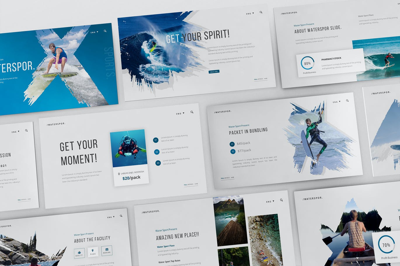 这次老不湿分享的是,时尚高端简约水上运动PowerPoint演示模板(pptx),平面和简约的设计使您的演示文稿脱颖而出,具有简单,干净和简约的设计理念。用于高质量的品牌展示资产。