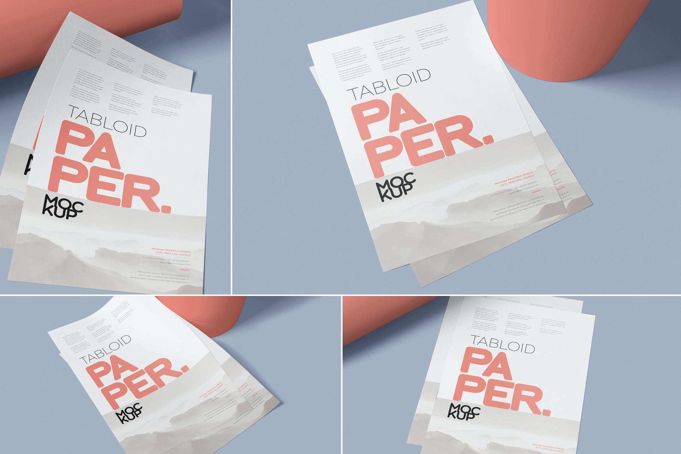 使用此小报尺寸的纸张传单样机,并惊人地展示您的信笺和页面设计。具有4种不同的样式和布置。只需使用Photoshop进行所有编辑即可惊人地呈现您的任何设计。