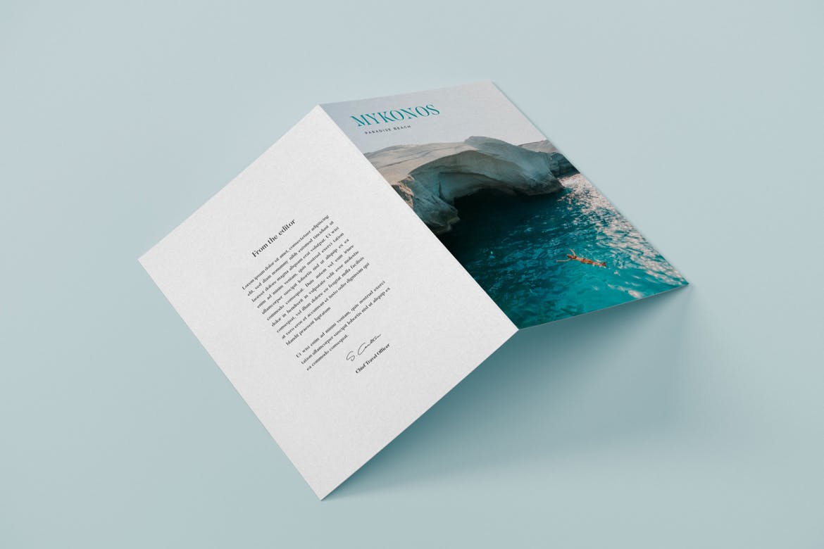 在这个完美的纵向规格双折页小册子封面效果图展示样机上,可以更有效地显示您的设计,用于图形设计师、印刷厂、杂志、广告等的编辑设计。可以通过智能对象轻松个性化您的传单或其他印刷设计,并将背景更改为任何颜色 。