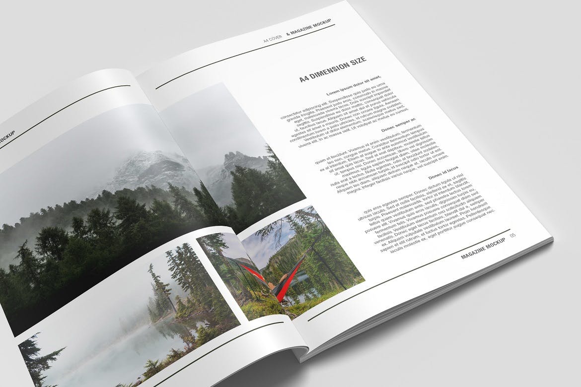 在此A4规格杂志特写样机中展示您的杂志画册设计,以获取真实的结果。这是Photoshop文件,分层的智能对象功能,可帮助您在设计中更改当前图像。