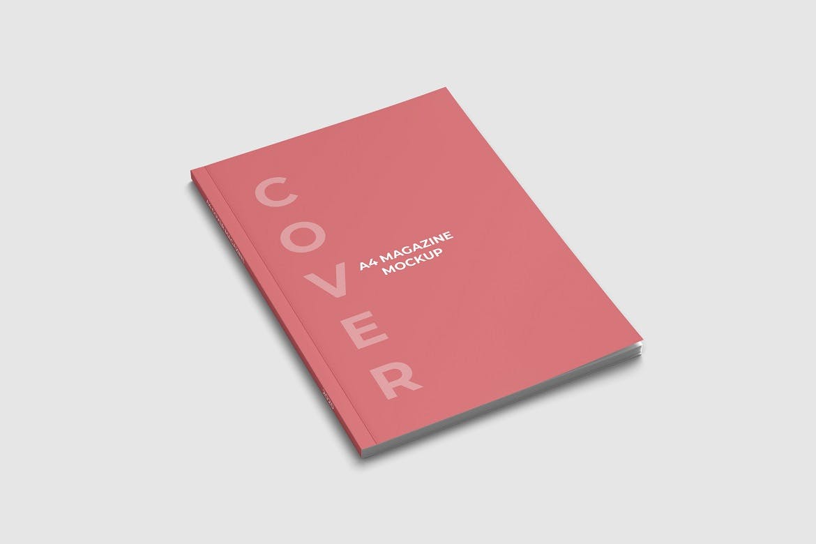 高角度俯视图杂志样机,非常适合展示您的A4杂志封面设计,以便进行真实预览。这是Photoshop文件,分层的智能对象功能,可帮助您更改设计中的当前示例图像。