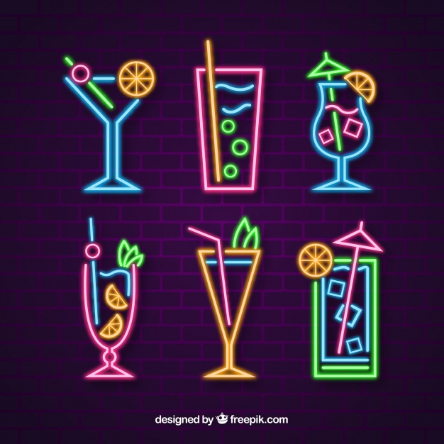 这次介绍这些霓虹灯鸡尾酒系列的样式,有趣的设计,可以用于饮料店、酒吧等设计上。