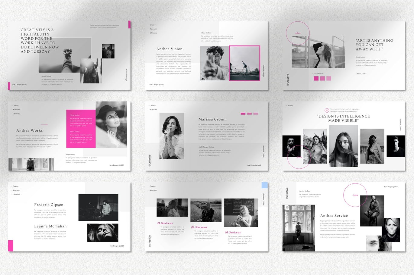 这次老不湿分享的是,时尚高端简约清新多用途Google Slide谷歌幻灯片演示模板(pptx),创意工作室,代理机构,公司,公司,投资组合,摄影,也可以用于个人投资组合。