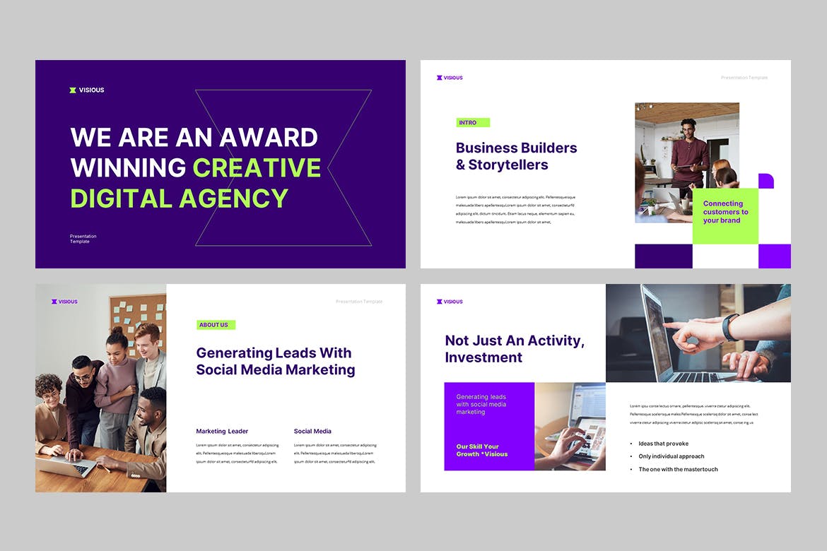 用于多用途演示的专业Powerpoint模板。内置16:9(高清)。干净,现代,易于编辑。非常适合您的业务、广告牌、创意代理和社交媒体营销演示