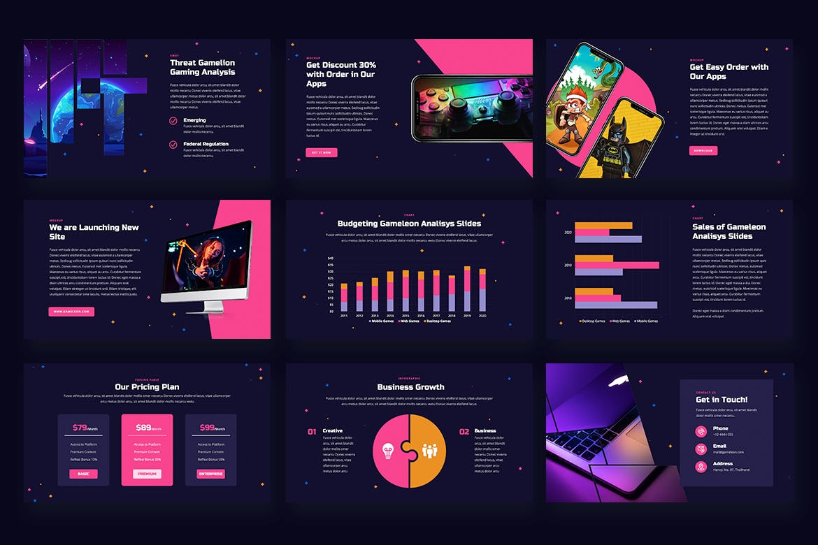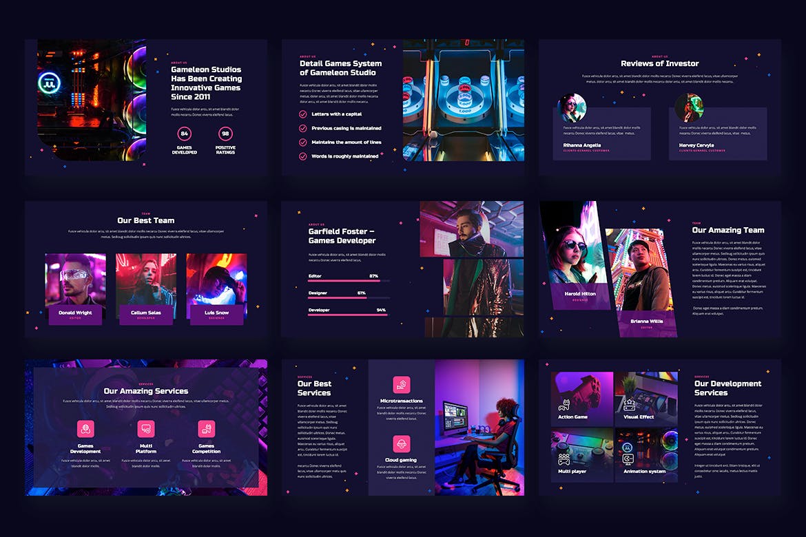 Gameleon–Gaming Studio Powerpoint Template是一个多用途的Gaming Studio Powerpoint模板,可用于任何类型的设计参考:业务、公文包、公司、游戏、游戏工作室等。