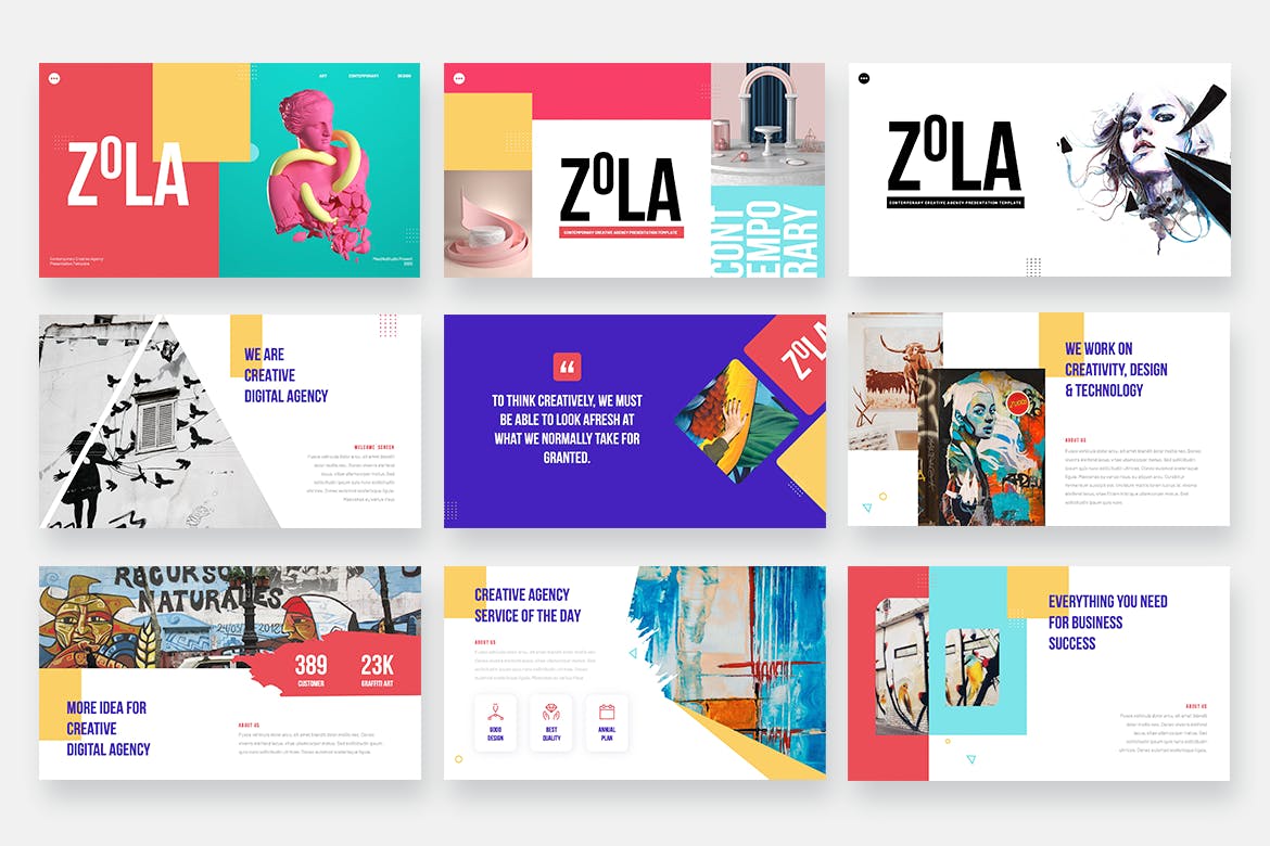ZOLA–当代创意机构Powerpoint模板是一个多用途的当代Powerpoint模板,可用于任何类型的演示:商业、公文包、公司、个人、公文包、艺术、当代、最小、审美,也可用于定制制作。
