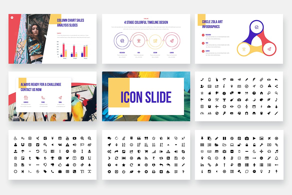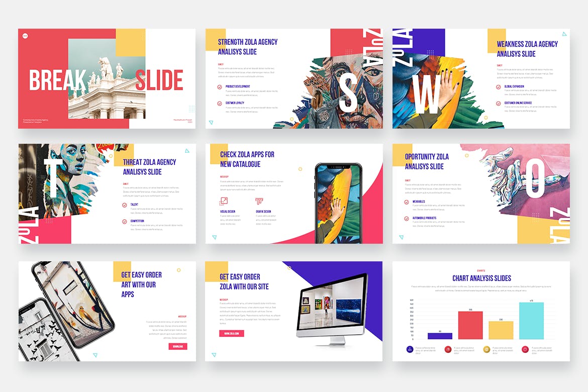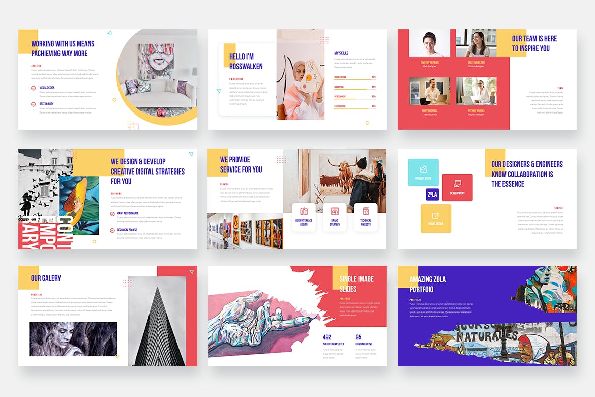 佐拉-当代创意机构的Powerpoint模板具有专业、超现代和独特的设计,每一张幻灯片都是以热爱和关注细节的方式创作的。