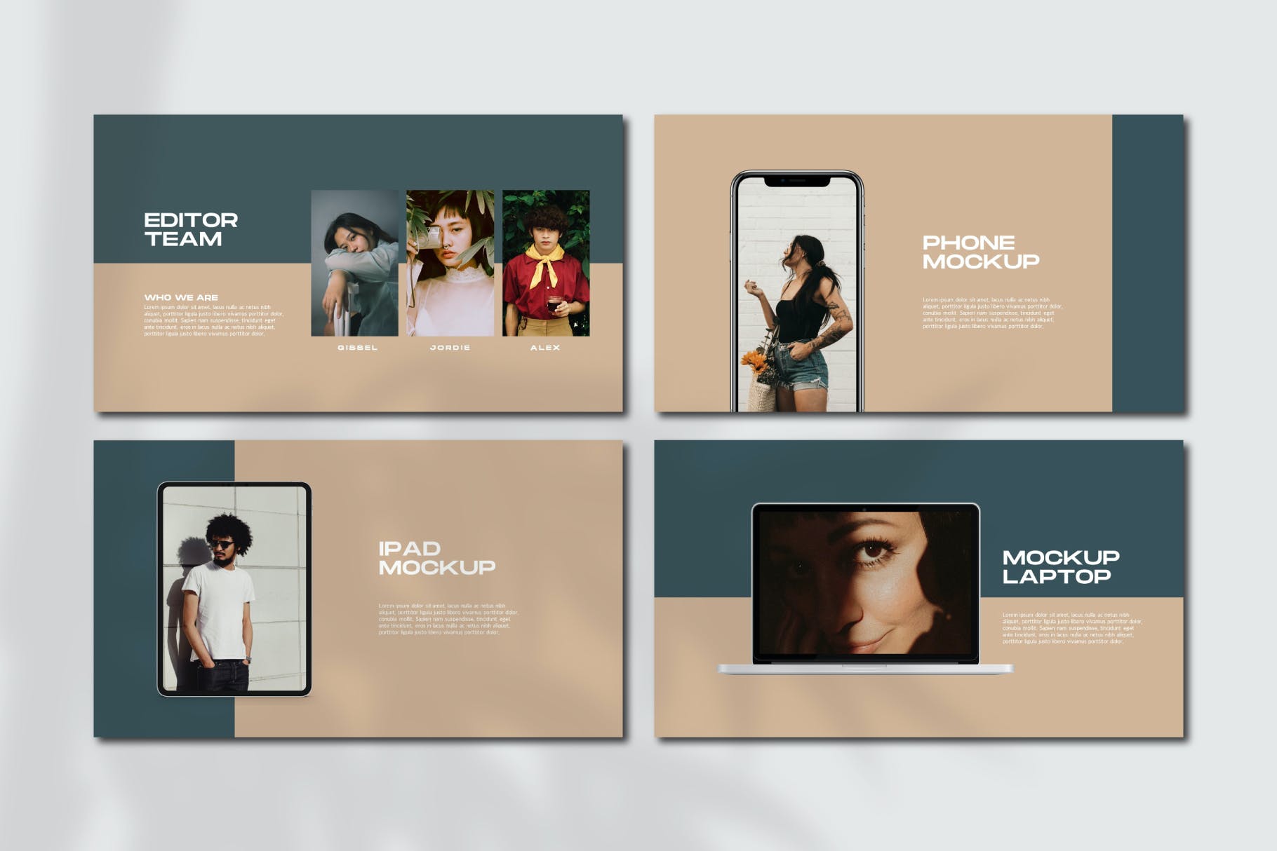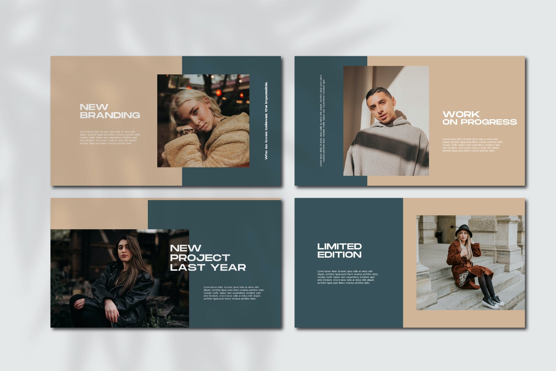 这个时尚转轮Powerpoint 模板拥有专业、超现代和独特的设计,明暗结合的排版设计,可以用于任何类型的演示。