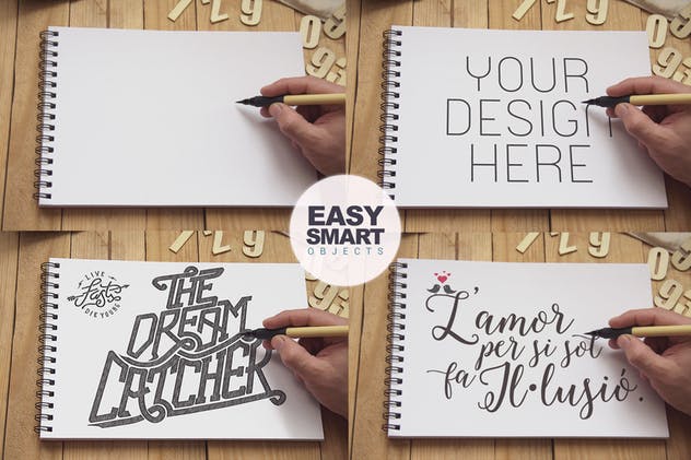 高分辨率专业照片拍摄的绘画本艺术绘画创作预览样机。该样机非常适合以逼真的外观呈现您的艺术作品、素描、插画等。具有智能对象功能,它可以分层Photoshop格式提供,并且易于使用。该样机还带有4个最终过滤器,您可以选择这些过滤器以适合您的风格。此图像仅用于生成预览。预览图像中的设计和字体仅用于演示目的,不包括在文件内。