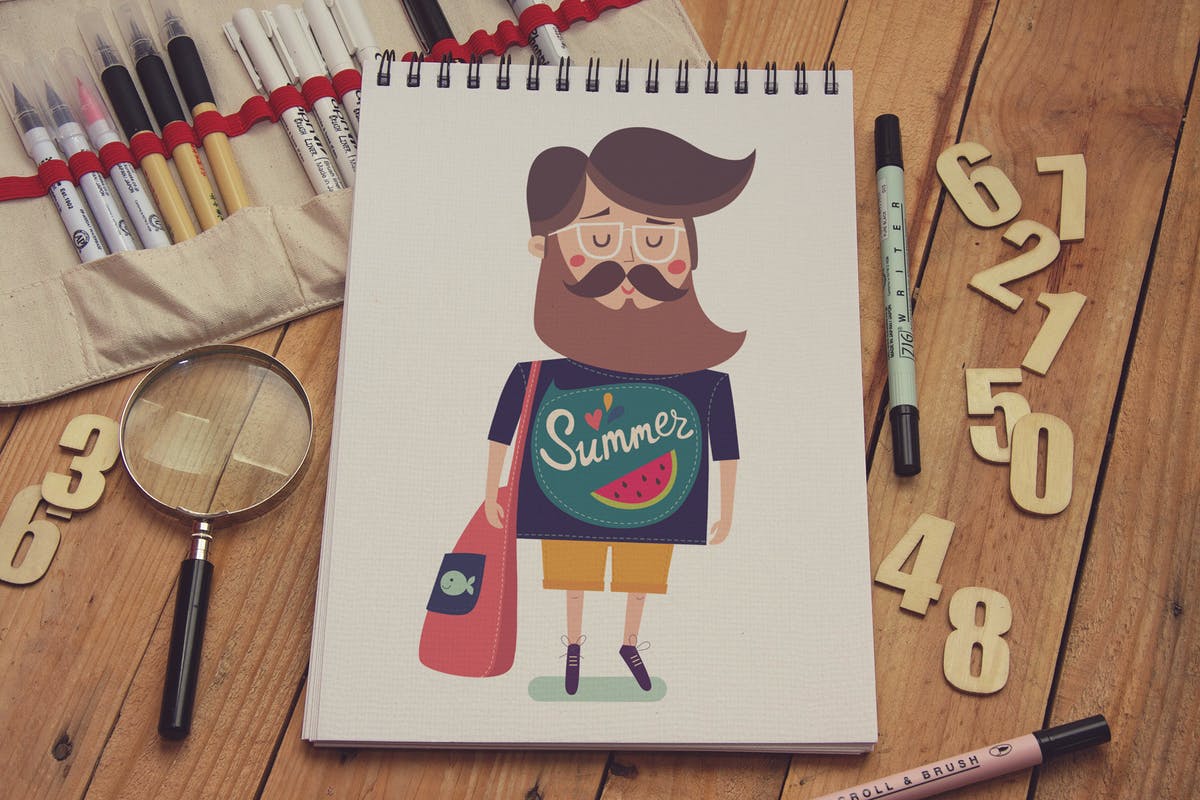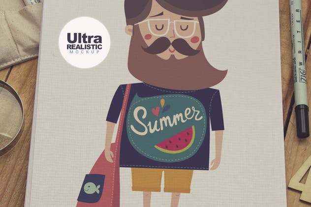 高分辨率专业照片拍摄的竖版绘画本手绘插画作品展示样机。该样机非常适合以逼真的外观呈现您的艺术作品、素描、插画等。具有智能对象功能,它可以分层Photoshop格式提供,并且易于使用。该样机还带有4个最终过滤器,您可以选择这些过滤器以适合您的风格。此图像仅用于生成预览。预览图像中的设计和字体仅用于演示目的,不包括在文件内。