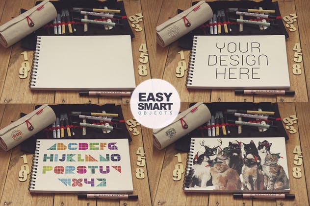 高分辨率专业照片拍摄的速写本艺术创作展示样机。该样机非常适合以逼真的外观呈现您的艺术作品、素描、插画等。具有智能对象功能,它可以分层Photoshop格式提供,并且易于使用。该样机还带有4个最终过滤器,您可以选择这些过滤器以适合您的风格。此图像仅用于生成预览。预览图像中的设计和字体仅用于演示目的,不包括在文件内。