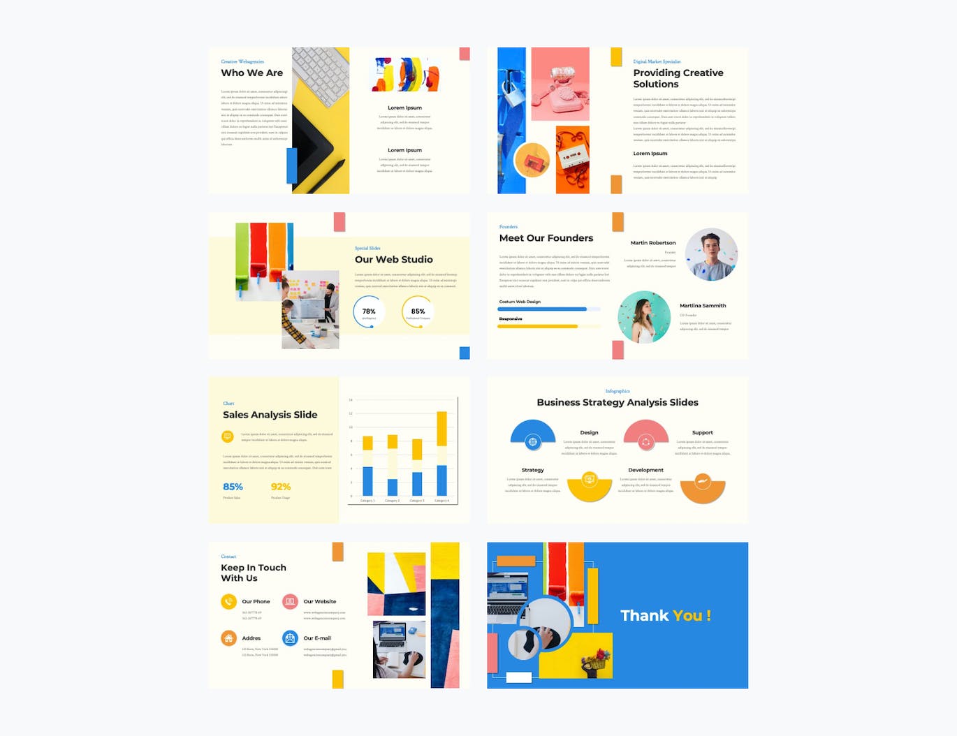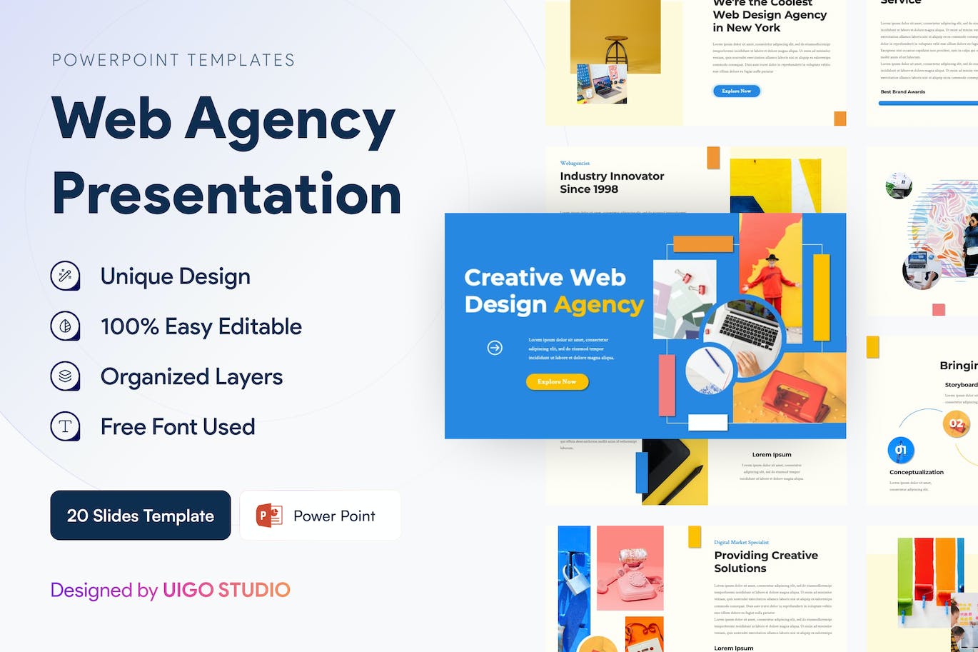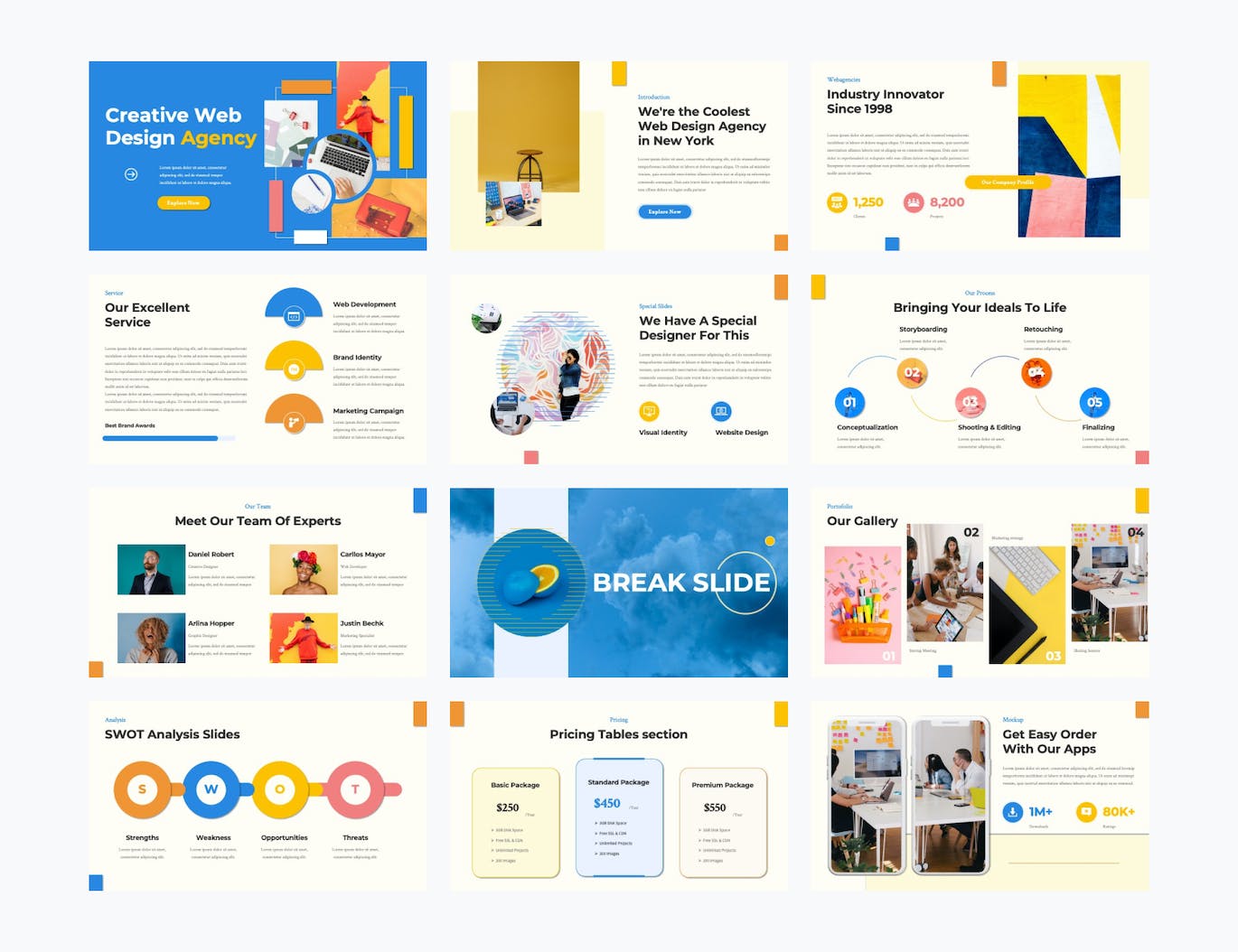这次分享的是,彩色高端简约创意网页设计机构PPT模板(pptx),一个具有专业人士和现代风格的演示文稿/音高模板,可以让您的下一次演示令人惊叹。