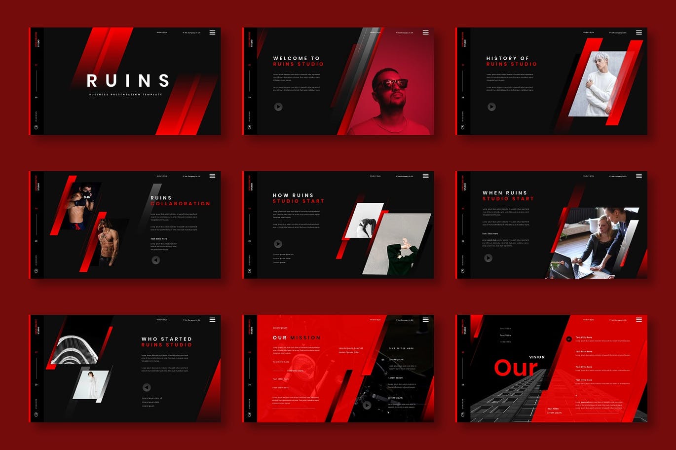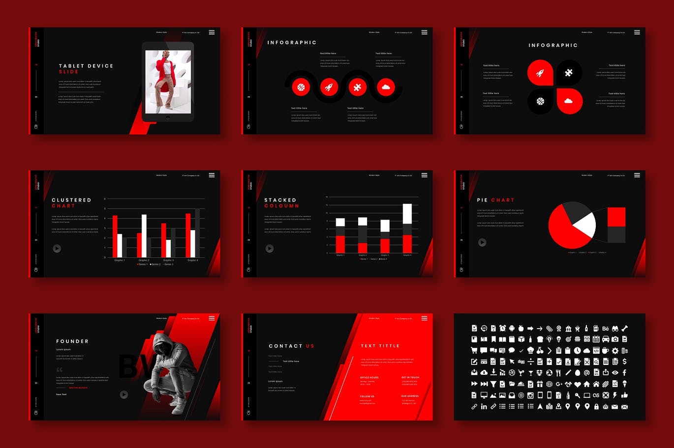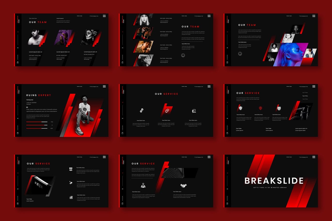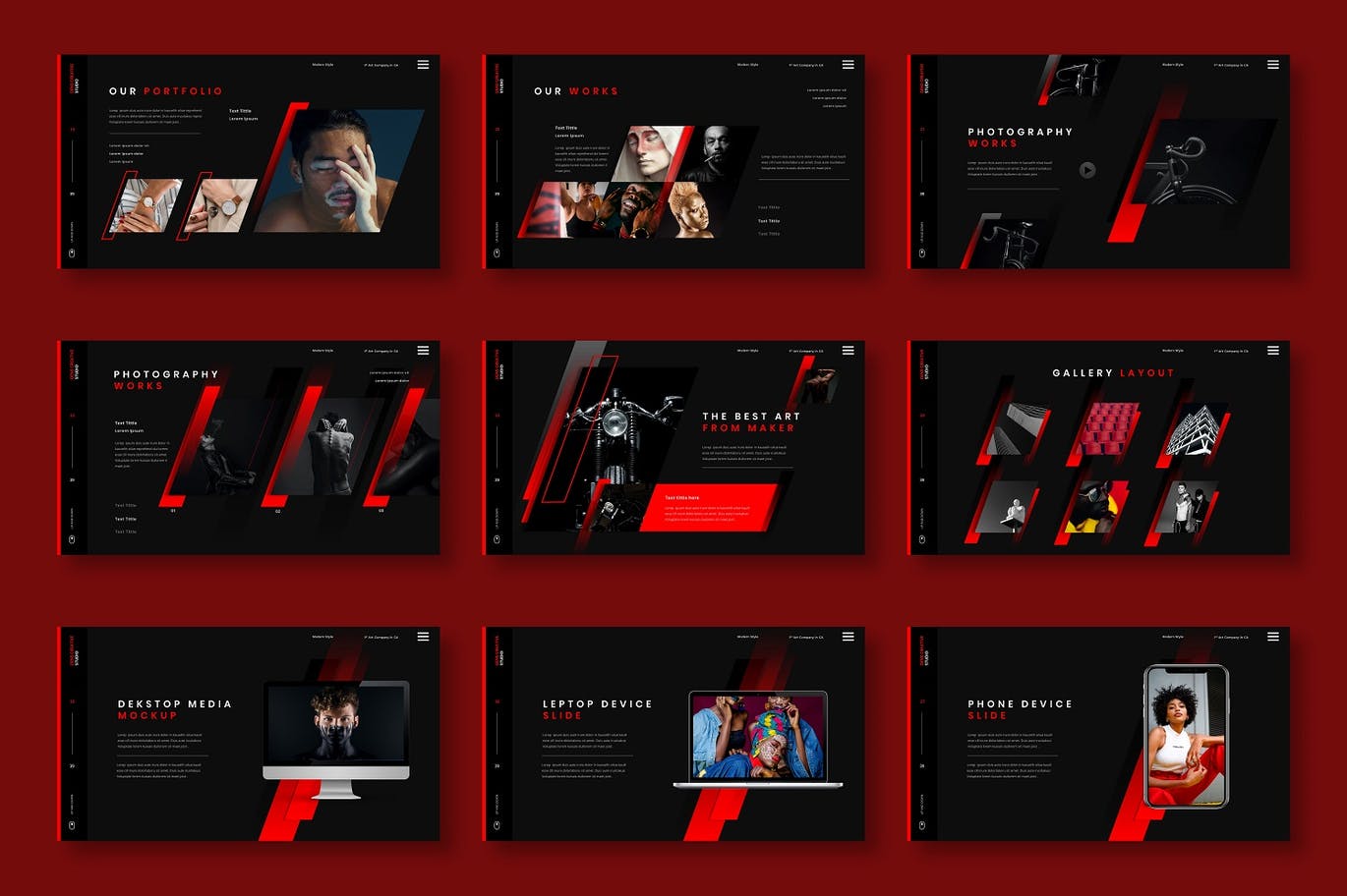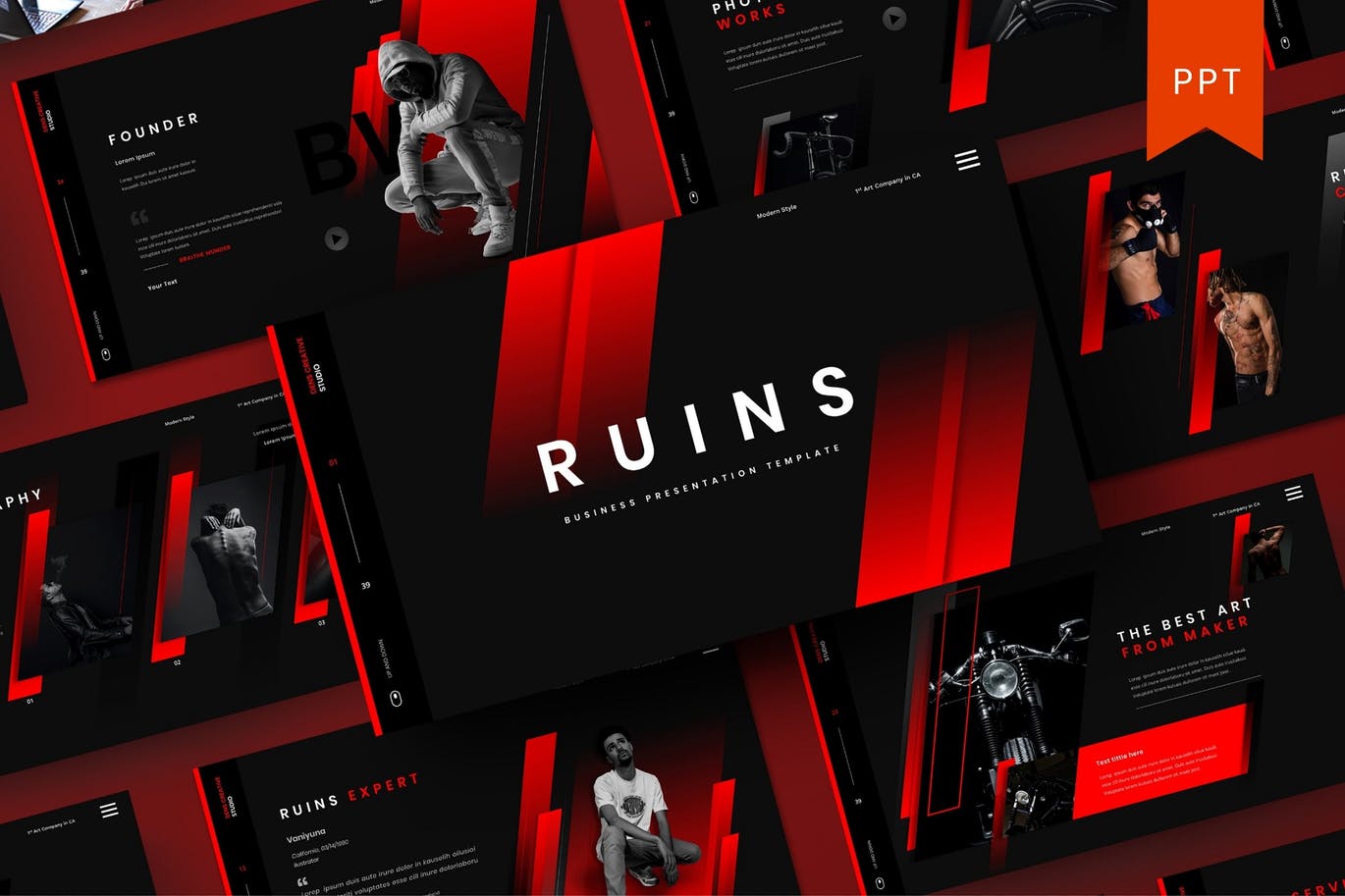 这次老不湿分享的是,时尚高端个性黑红配色的powerpoint幻灯片演示模板(pptx),创意代理,公司简介,公司和业务,投资组合,摄影,宣传册,启动,也可以用于个人投资组合。