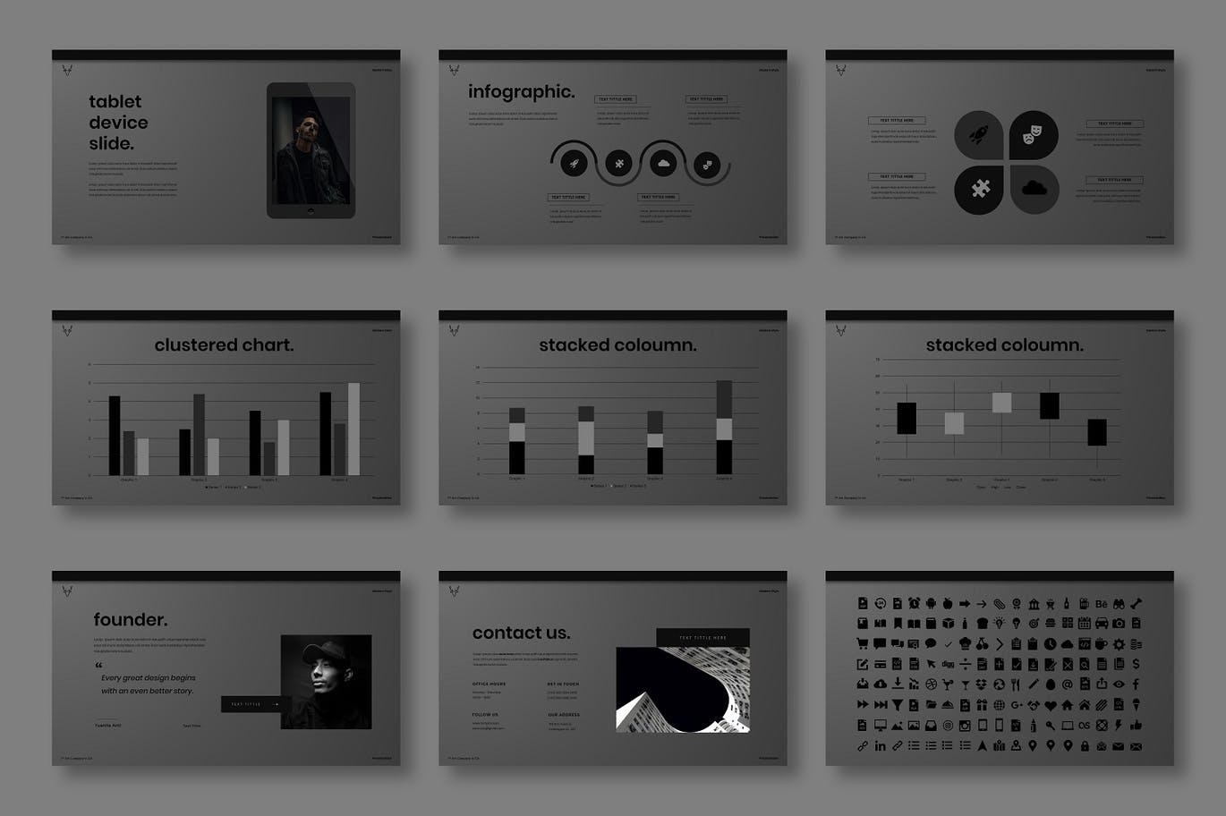 这次老不湿分享的是,高端商业商务质感时尚powerpoint幻灯片演示模板(pptx),创意代理,公司简介,公司和业务,投资组合,摄影,宣传册,启动,也可以用于个人投资组合。