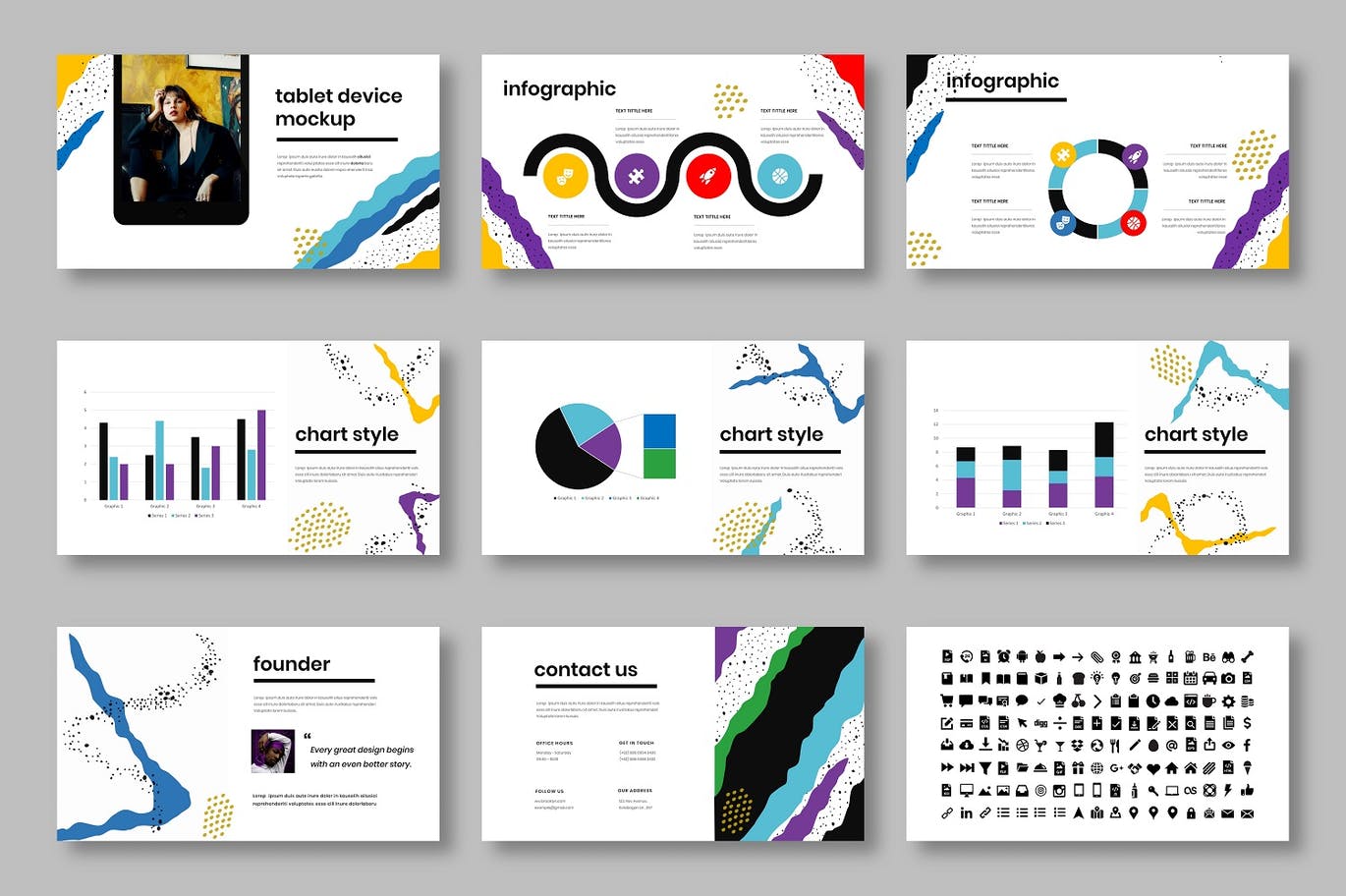 这次老不湿分享的是,绚丽时尚孟菲斯风格的创意powerpoint幻灯片演示模板(pptx),创意代理,公司简介,公司和业务,投资组合,摄影,宣传册,启动,也可以用于个人投资组合。