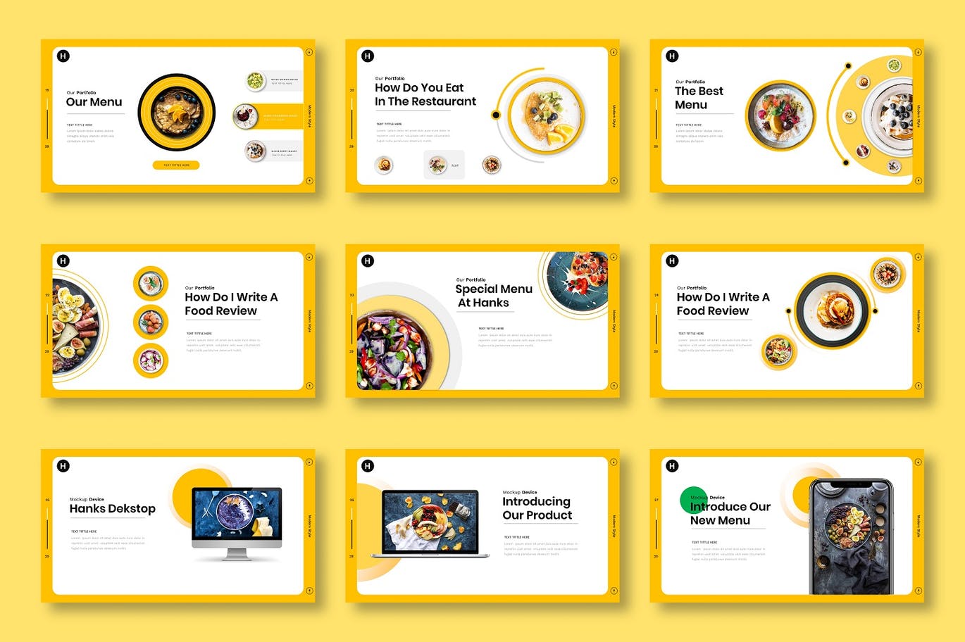 这次老不湿分享的是,时尚清新可爱诱人风格的食物餐厅powerpoint幻灯片演示模板(pptx),创意代理,公司简介,公司和业务,投资组合,摄影,宣传册,启动,也可以用于个人投资组合。