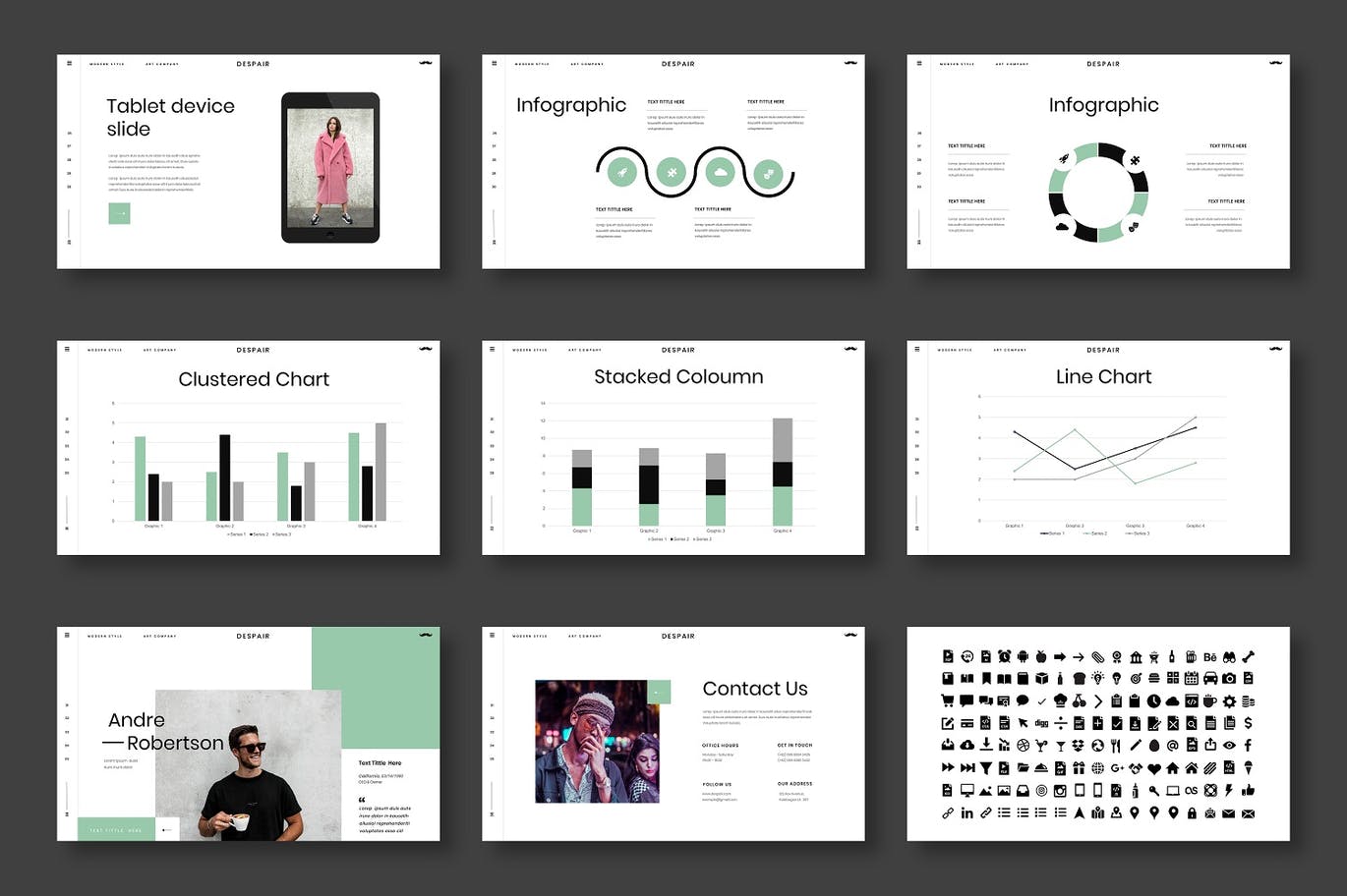 这次老不湿分享的是,时尚高端简约清新优雅powerpoint幻灯片演示模板(pptx),该演示模板可以用于:创意代理,公司简介,公司和业务,投资组合,摄影,宣传册,启动,也可以用于个人投资组合。