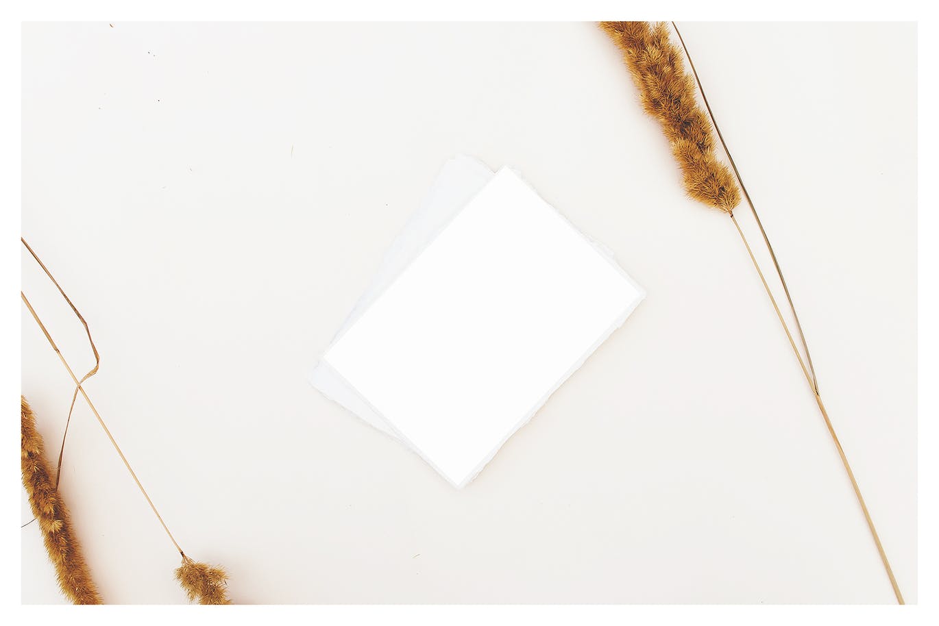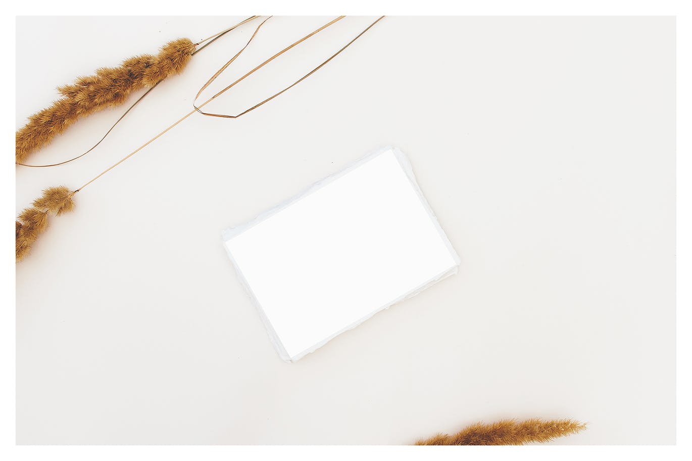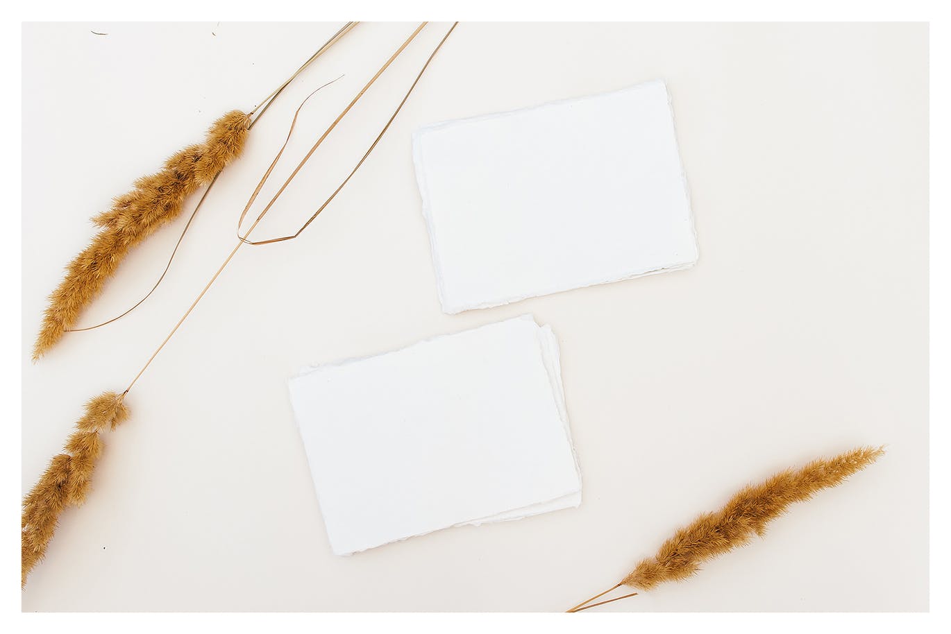 可爱极简的贺卡设计样机,干燥的野花和草药,您可以将此套件用于您的业务,向客户显示卡片和邀请卡设计。该套装包括11个PSD样机。您可以编辑白色背景的卡片。卡片有手工水彩纸纹理。