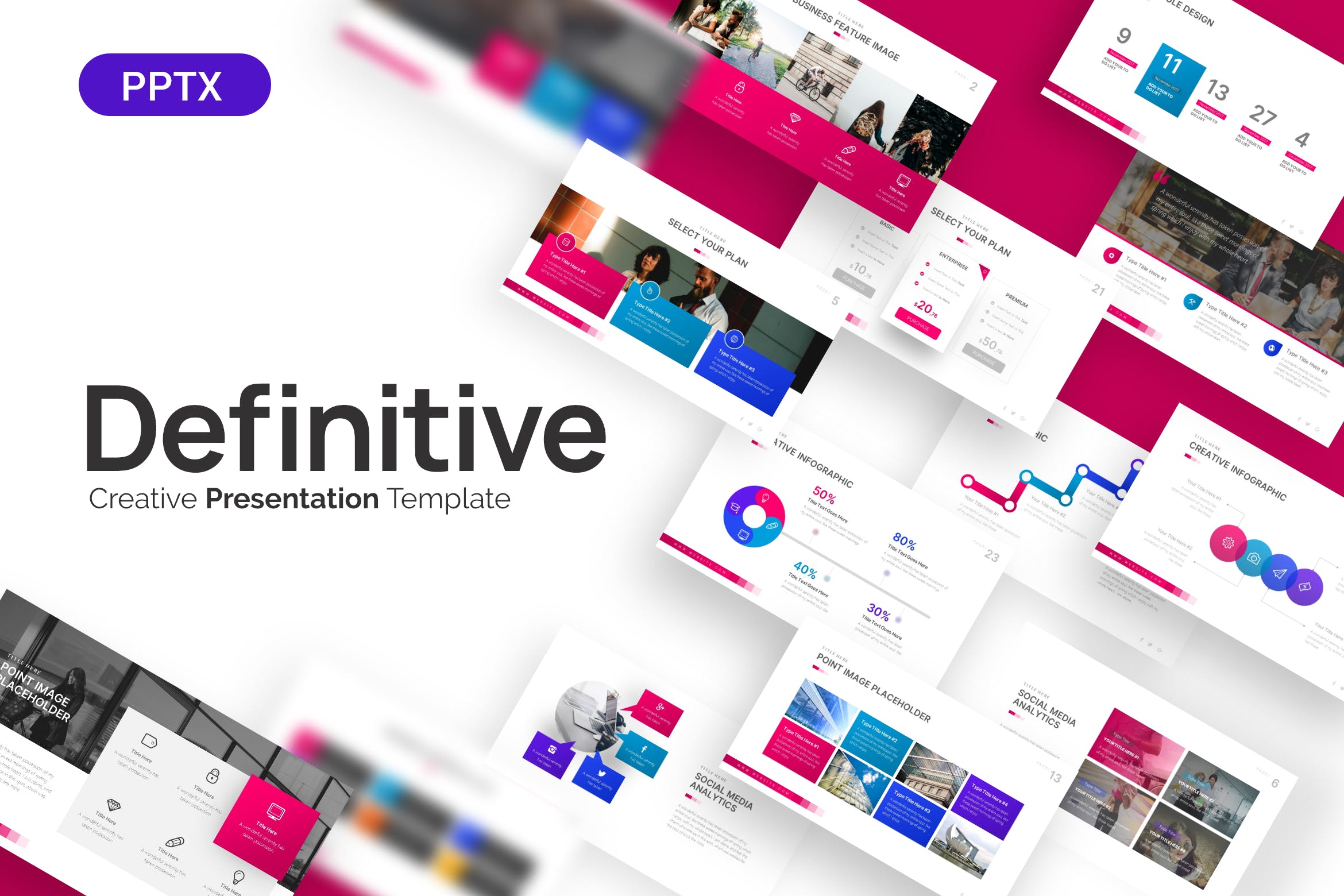 有超过30张独特的幻灯片,每一张幻灯片都有不同的布局风格,实物模型和社交媒体幻灯片Powerpoint模板可以满足您的演示目的。90多个丰富多彩的方案,随时准备改善您的业务,宣传牌,甚至舞台演示。根据您的需要,提供深色和浅色背景选项。您可以在演示文稿中找到可以使用的公司简介信息图、向量、图表和布局。