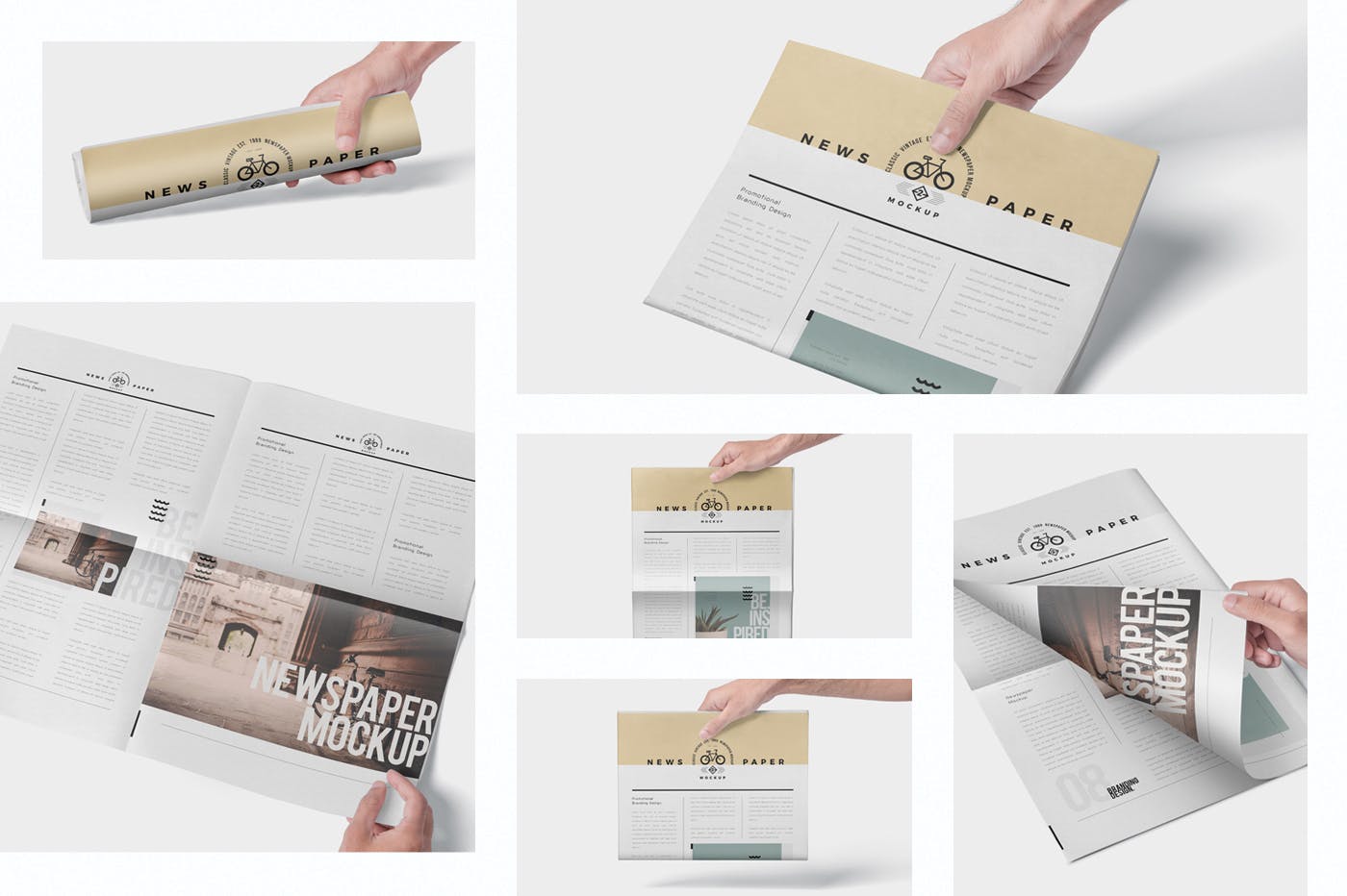 这些报纸样机将帮助您展示在报纸上打印后广告的外观。您可以使用智能对象选项轻松更改设计。此外,您还可以使用智能图层自定义阴影、效果和背景。